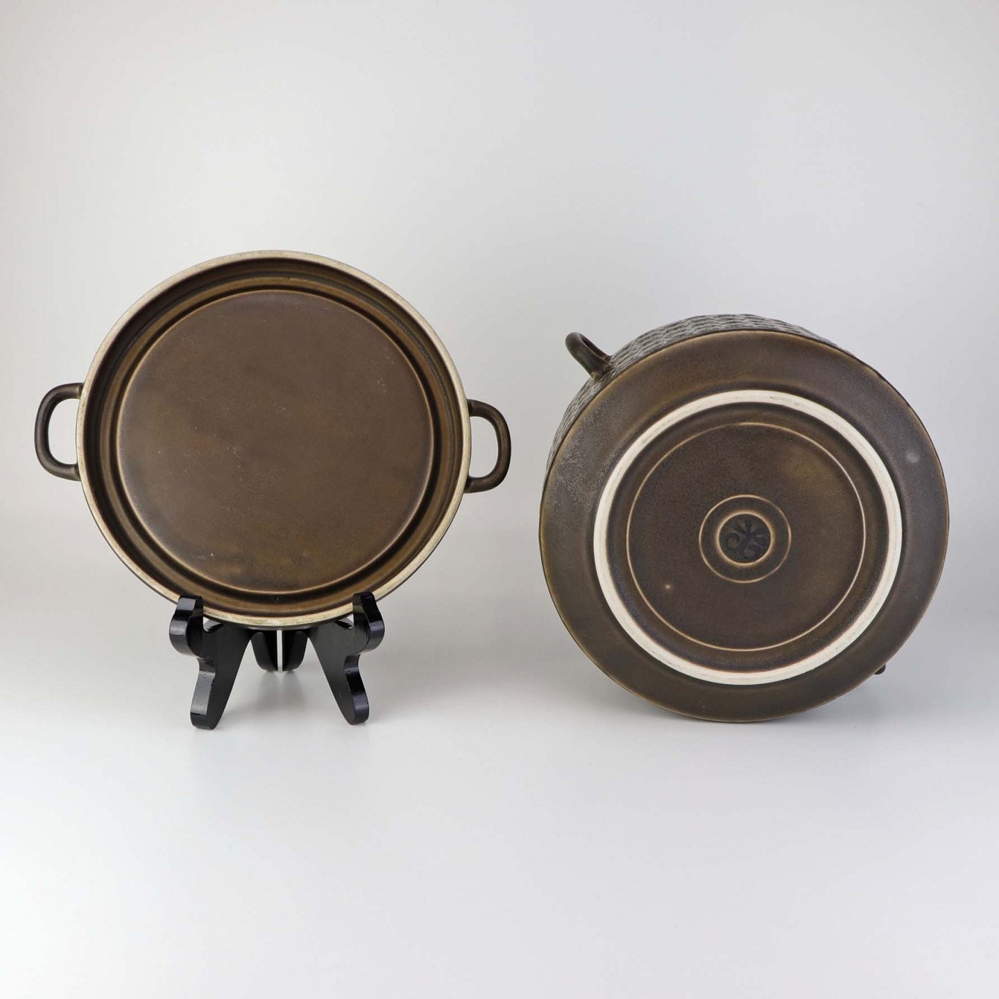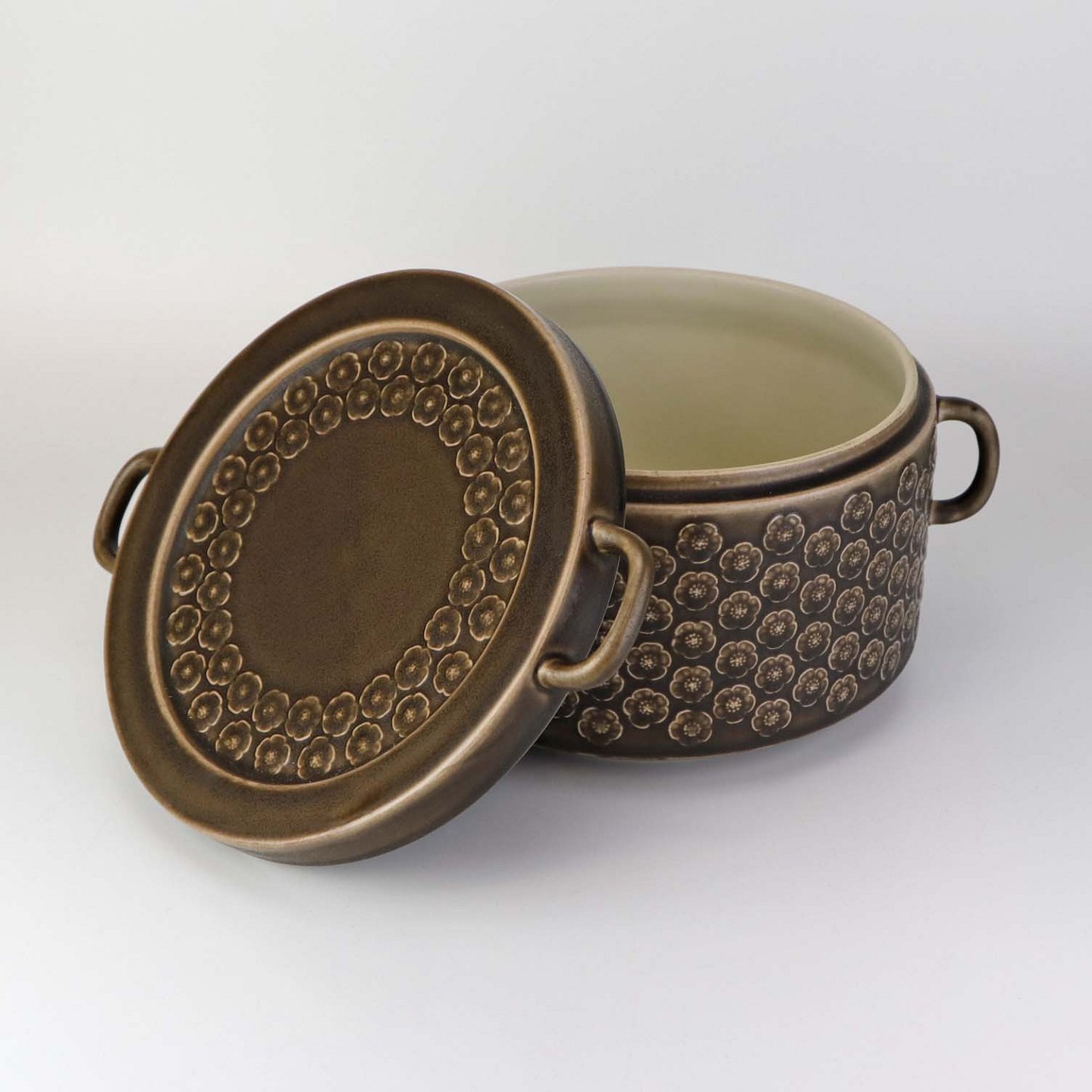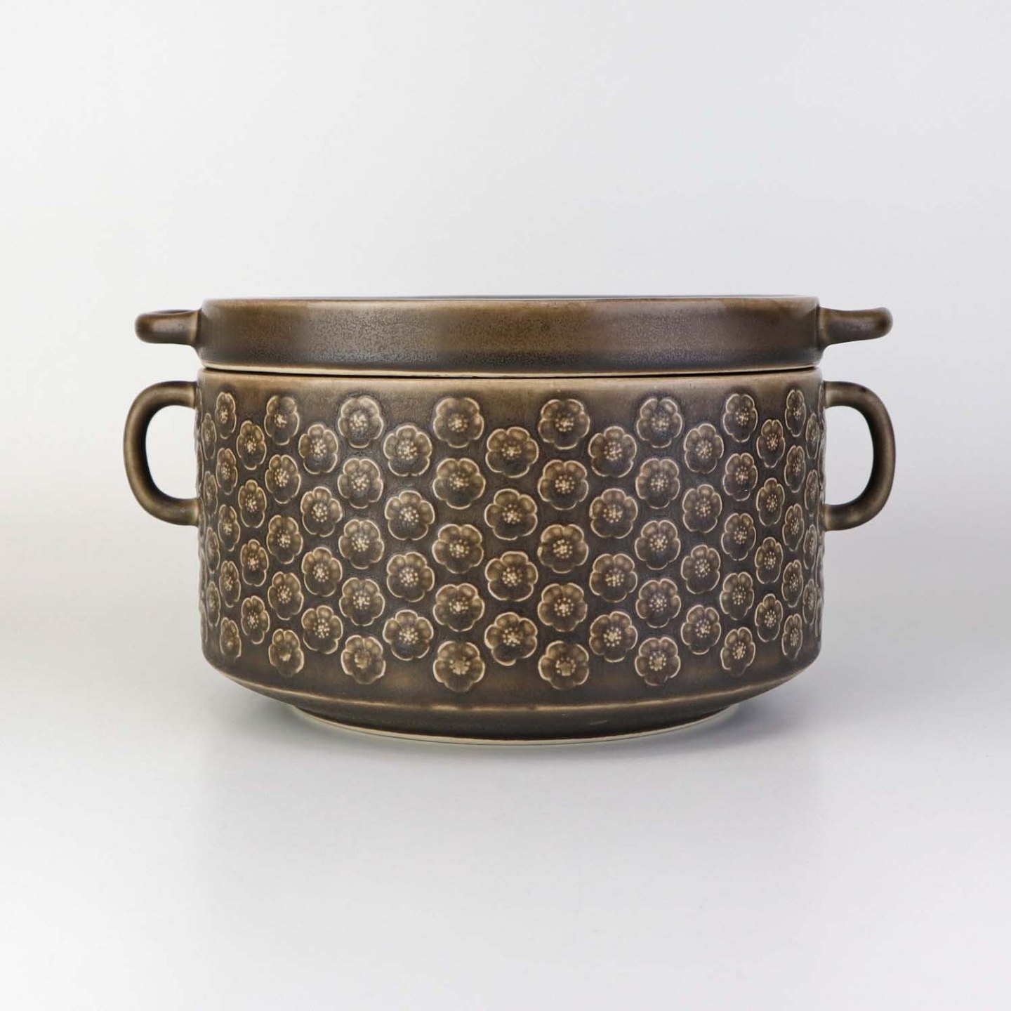 Stel i brun stentøj med blomster motiver