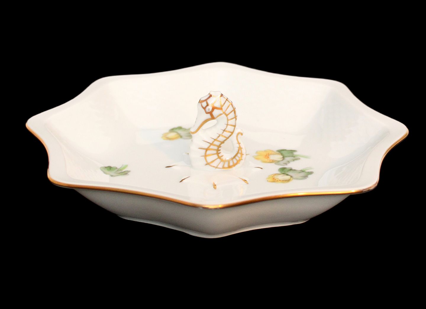 Text available in Danish: Kantet småkage skål med Søhest, Erantis, Bing & Grøndahl