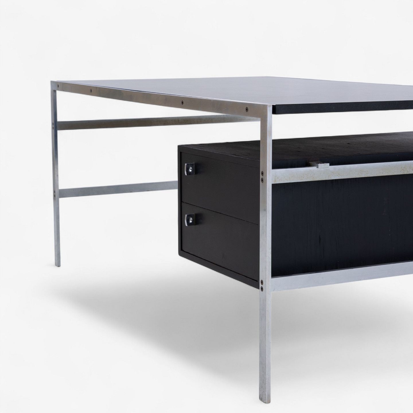 BO 550 - Steel desk with 'Nero Assuloto' granite top and black wenge drawer module.