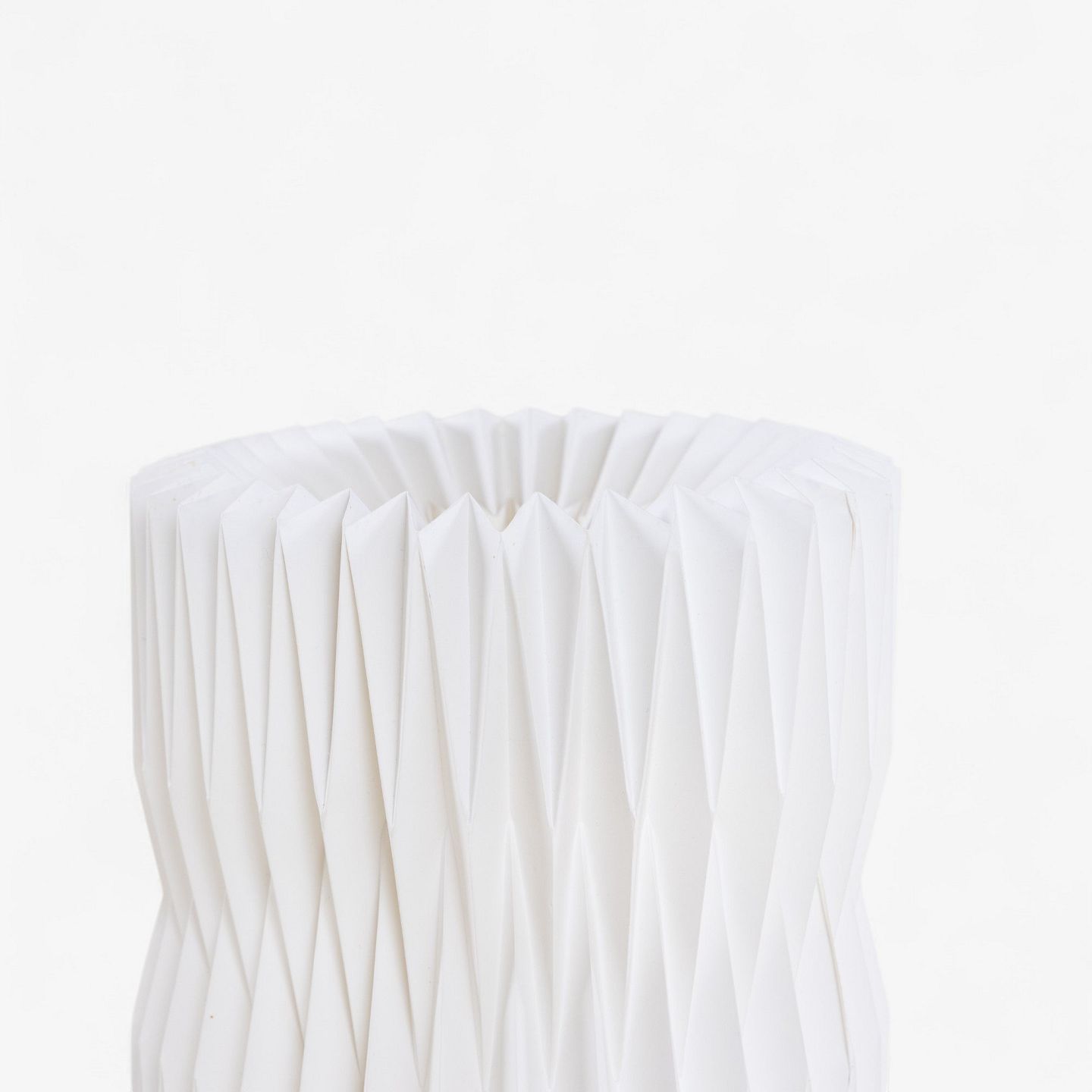 Pair of table lamps on tripod base in black lacquered metal with white pleated shades.