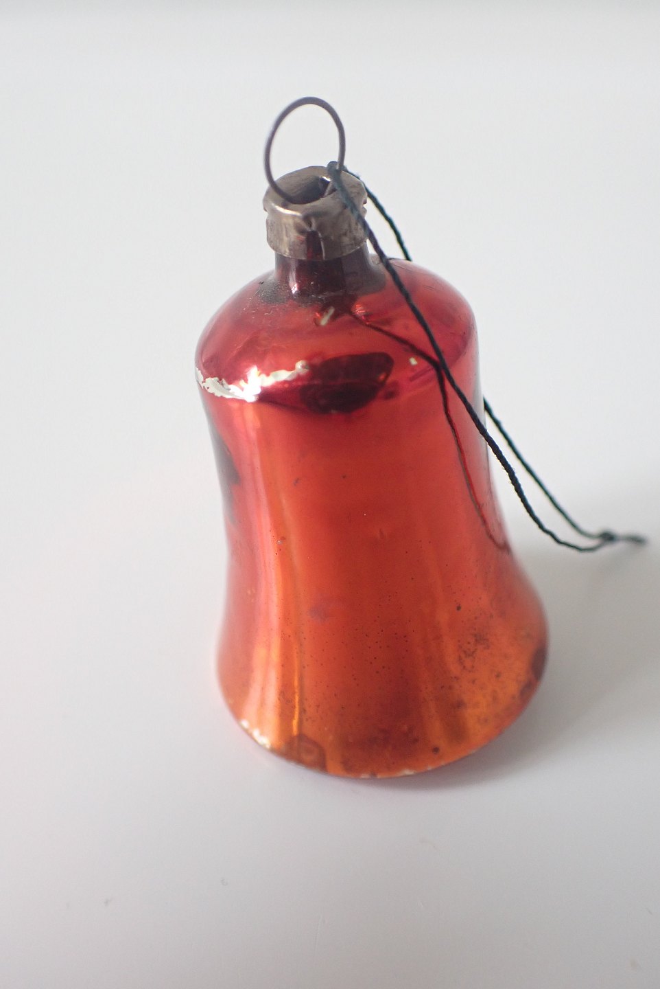 Øverst til højre: Lille rød klokke . Højde: 4,3 cm. Tyske 1940-erne. Pris: 60 kr.