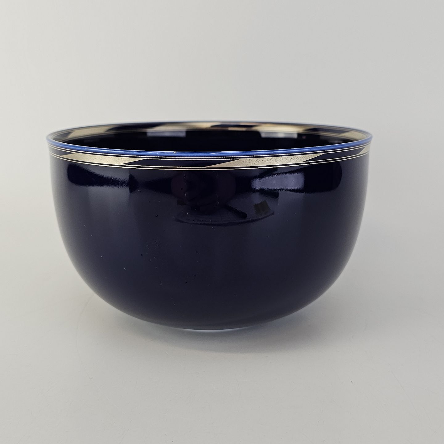 Blå skål i porcelæn med sølvkant