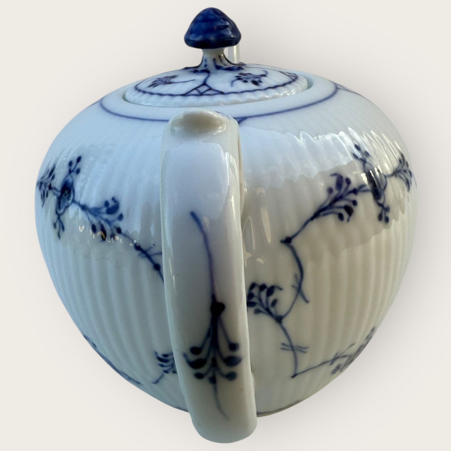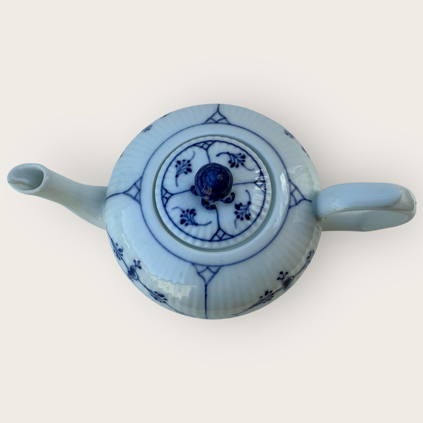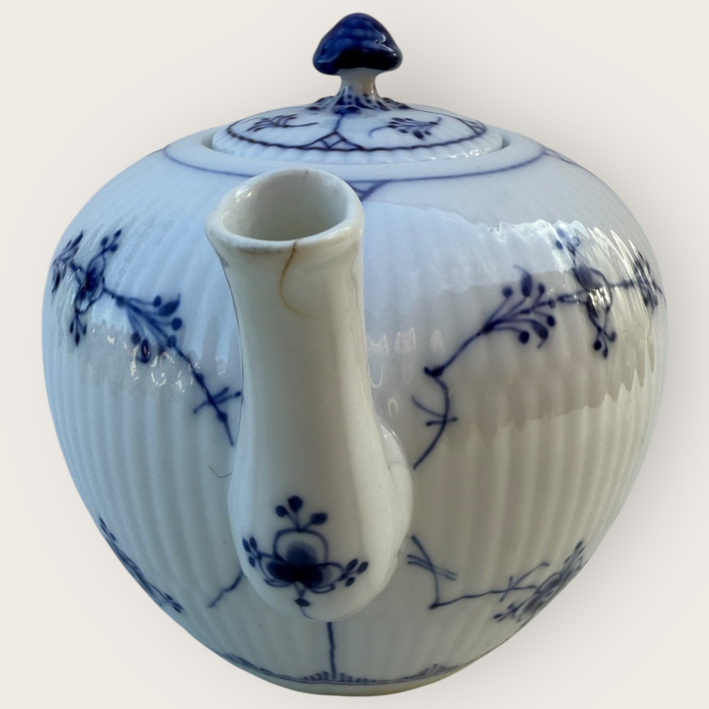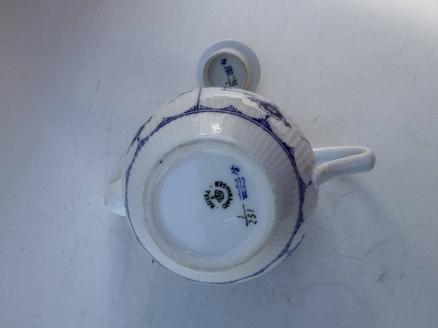 Royal Copenhagen, Blue Fluted, Teapot #1/ 251, Dimensions 14x23x14cm, 2nd grade *Small flaw / crack on the spout (see photo) otherwise good condition*
