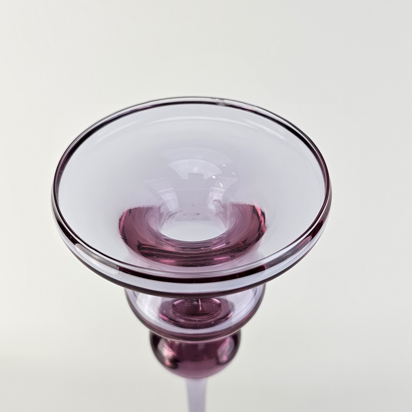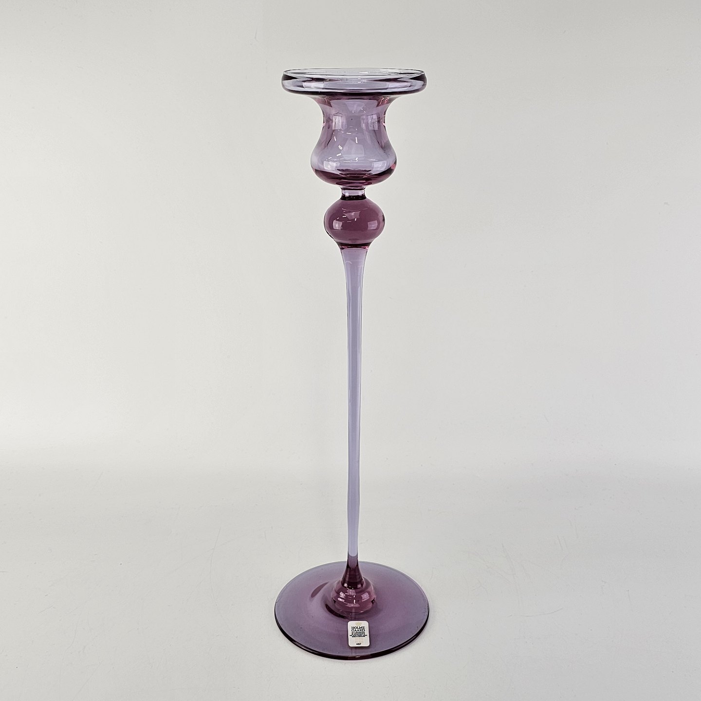 Lysestage i klart lilla glas. Model Cassiopeia