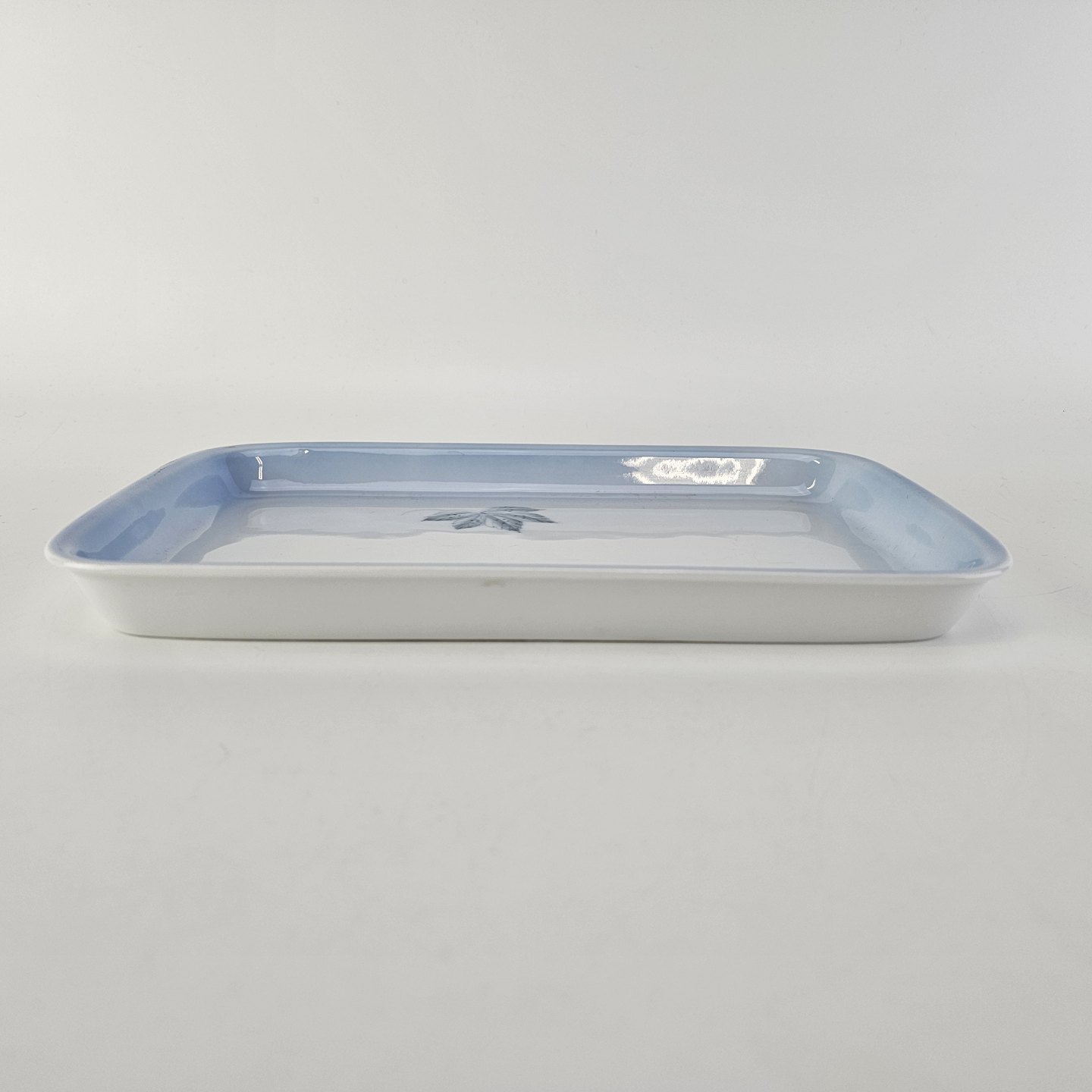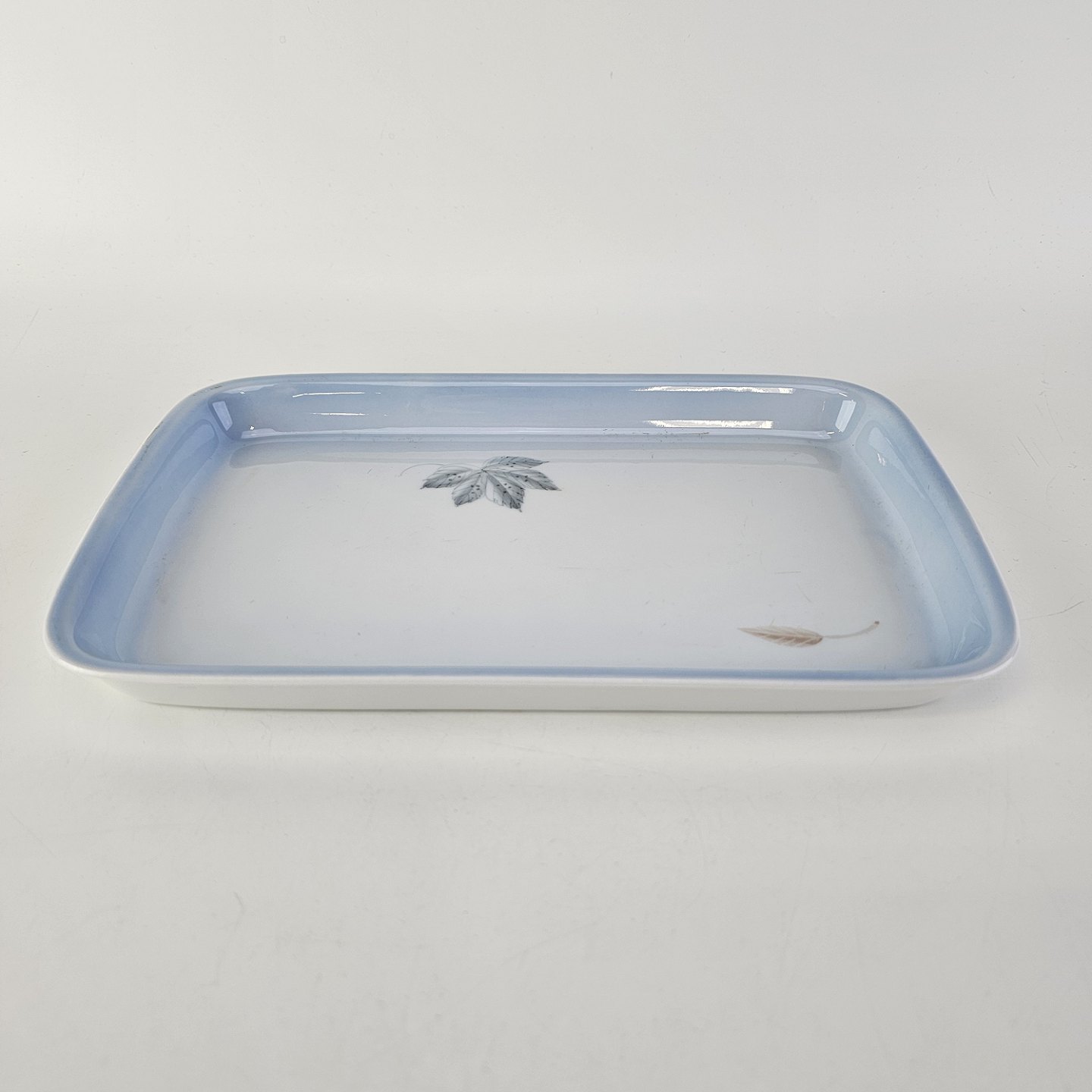Løvfald er hvidt porcelæn som toner ud i blå, dekoreret med faldende blade i sort og rødt