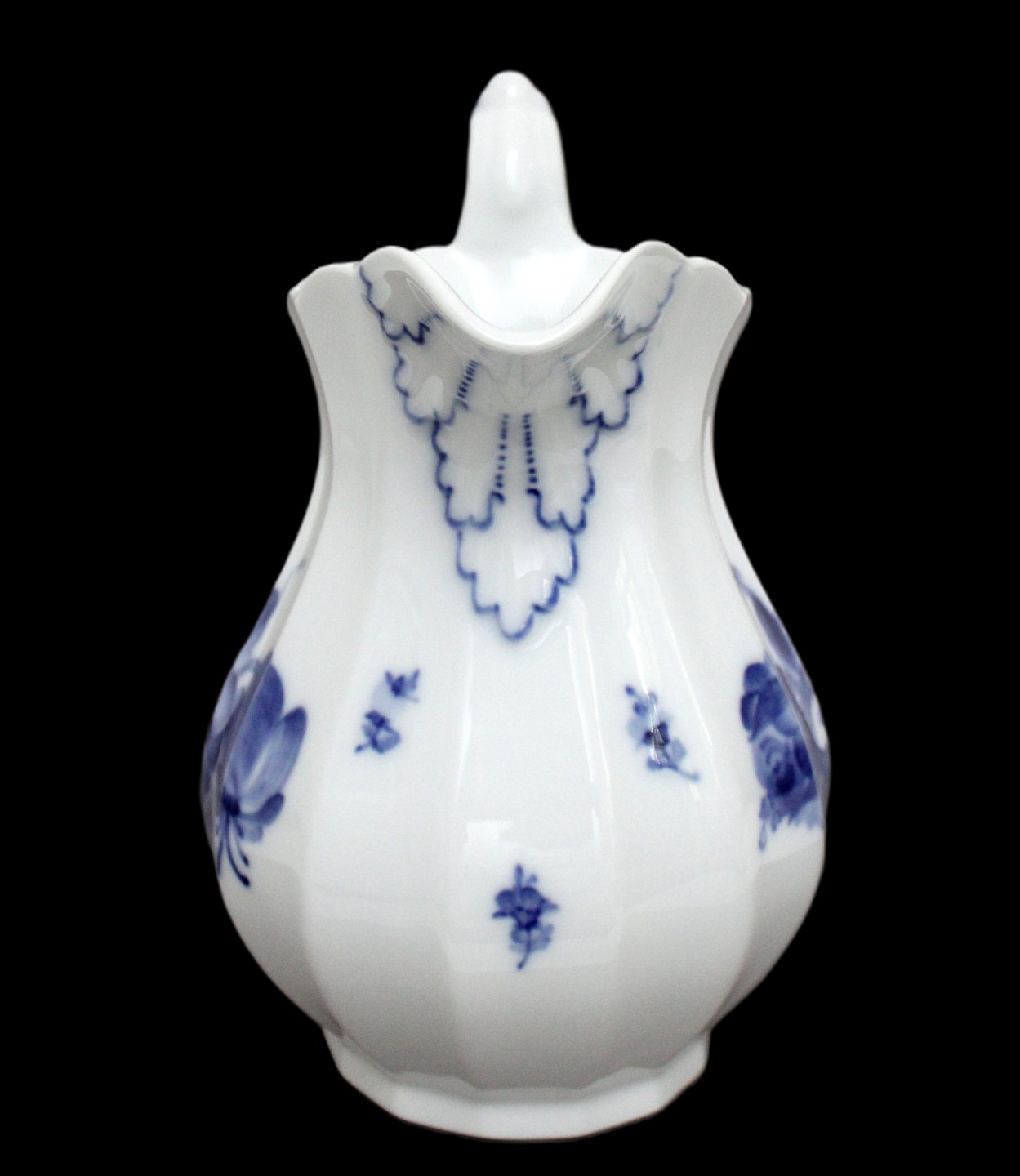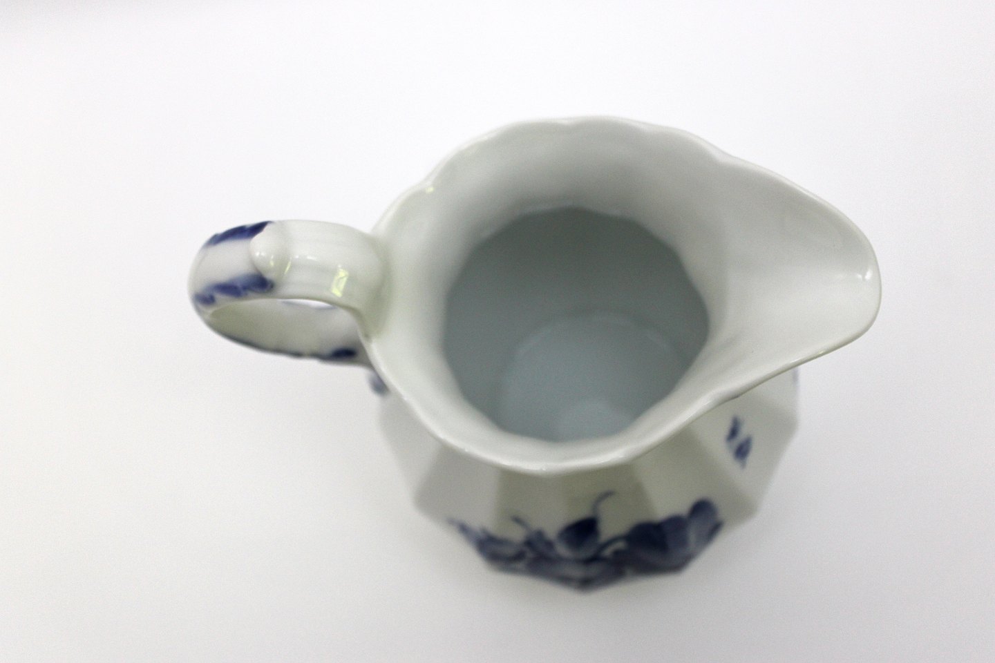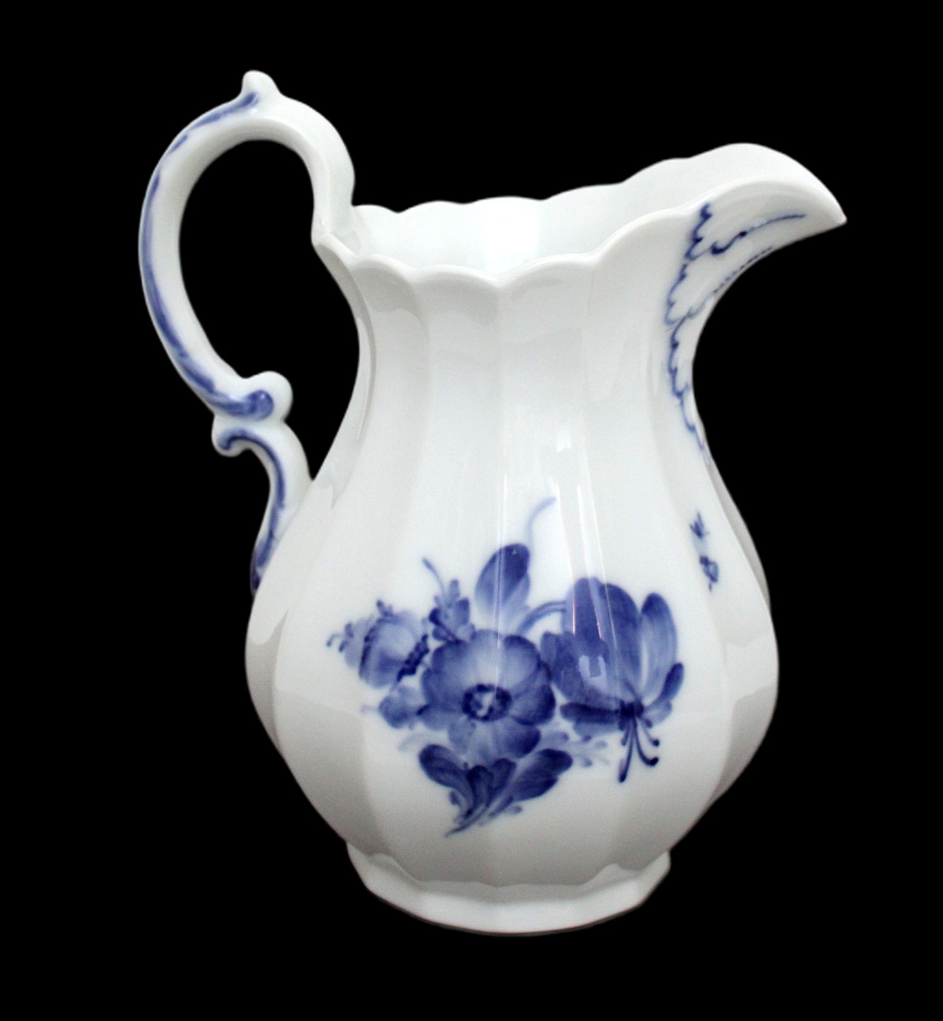 Text available in Danish: Royal Copenhagen, Blå Blomst Kantet, Stor mælke eller vandkande. Nr. 10/8522. Højde 22,5 cm. Længde 18,5 cm. Diameter 14 cm. I. sortering Fin stand. Pris: 850 kr. Lager: 1