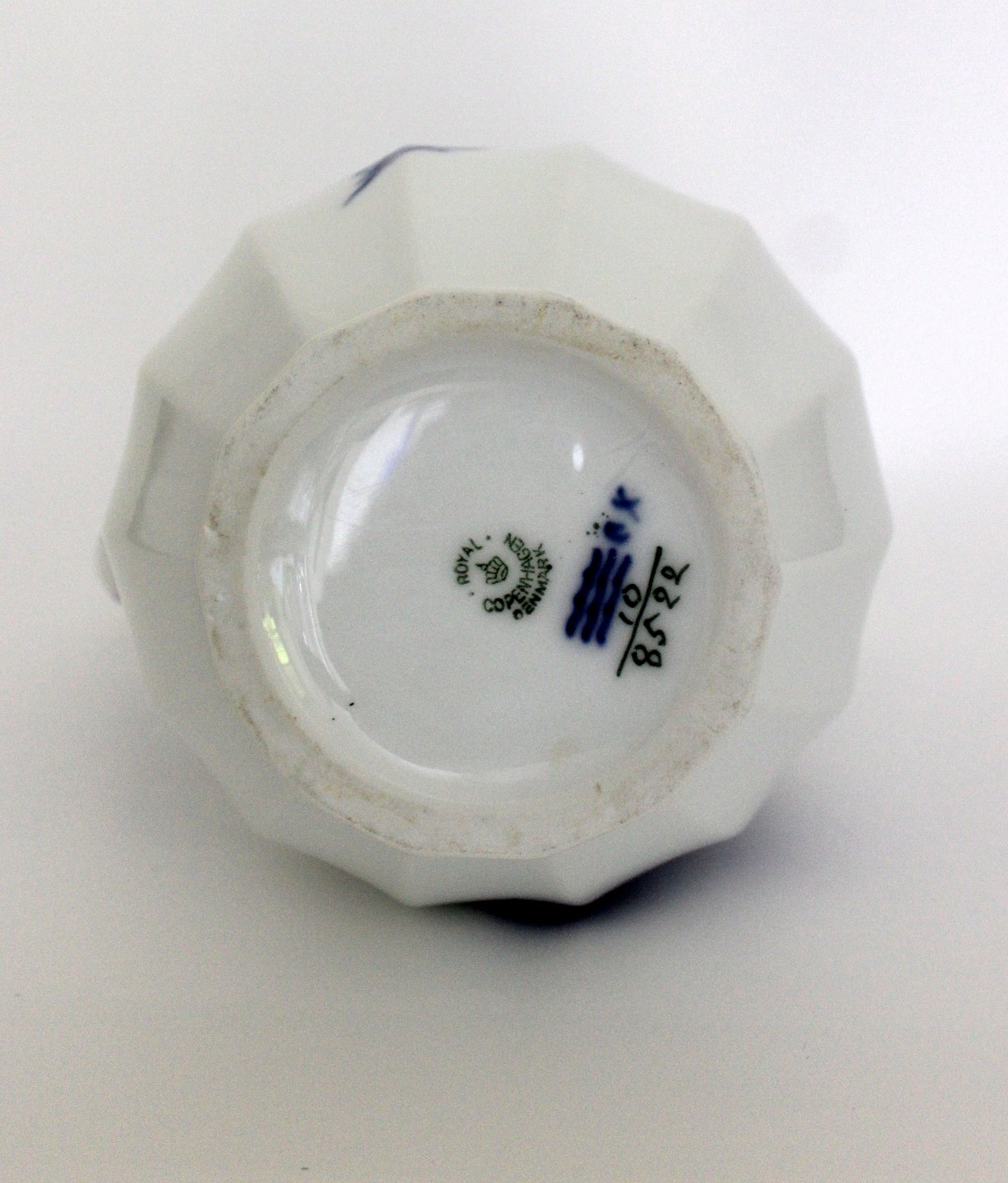 Text available in Danish: Stor mælkekande, Blå Blomst Kantet, Royal Copenhagen