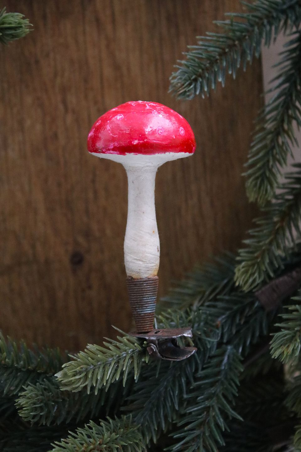 Old Christmas tree ornament in the shape of a toad hat in cotton/paper with clip. H: 8cm.