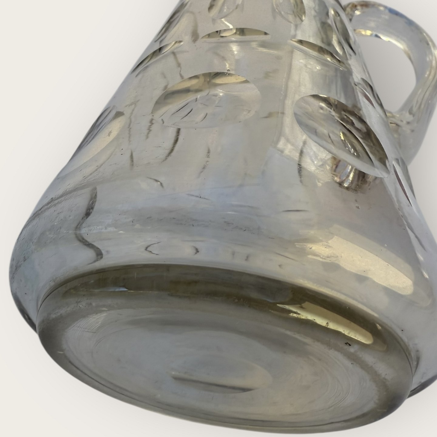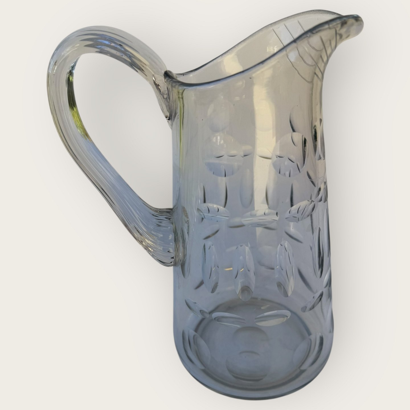 Snail handle jug with cuts, 23cm high, 16x12cm wide, *Small chip on the handle where it is attached to the jug (see photo) otherwise very good condition*