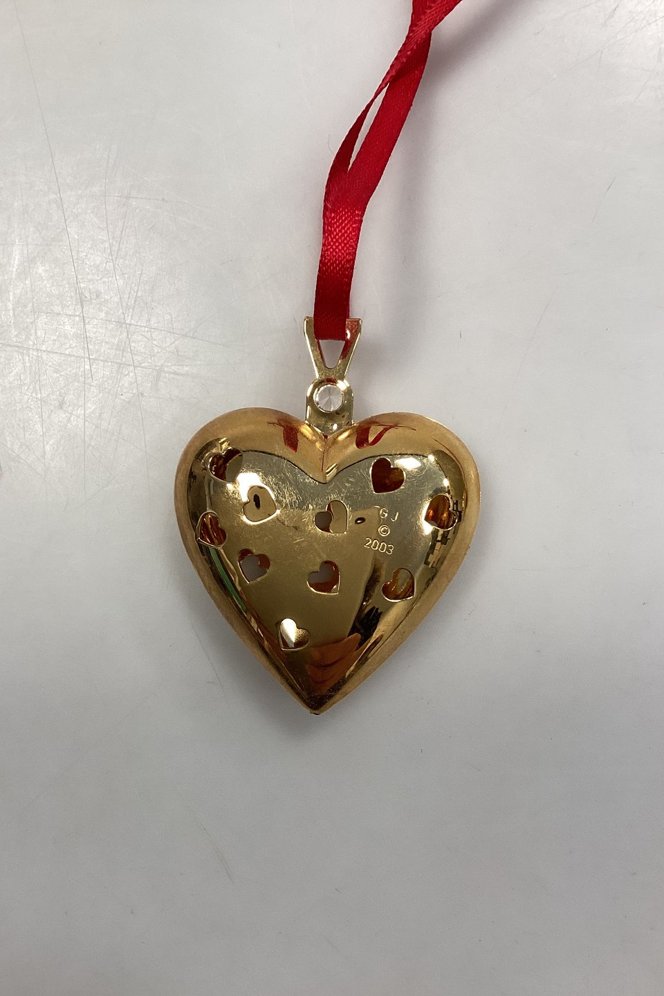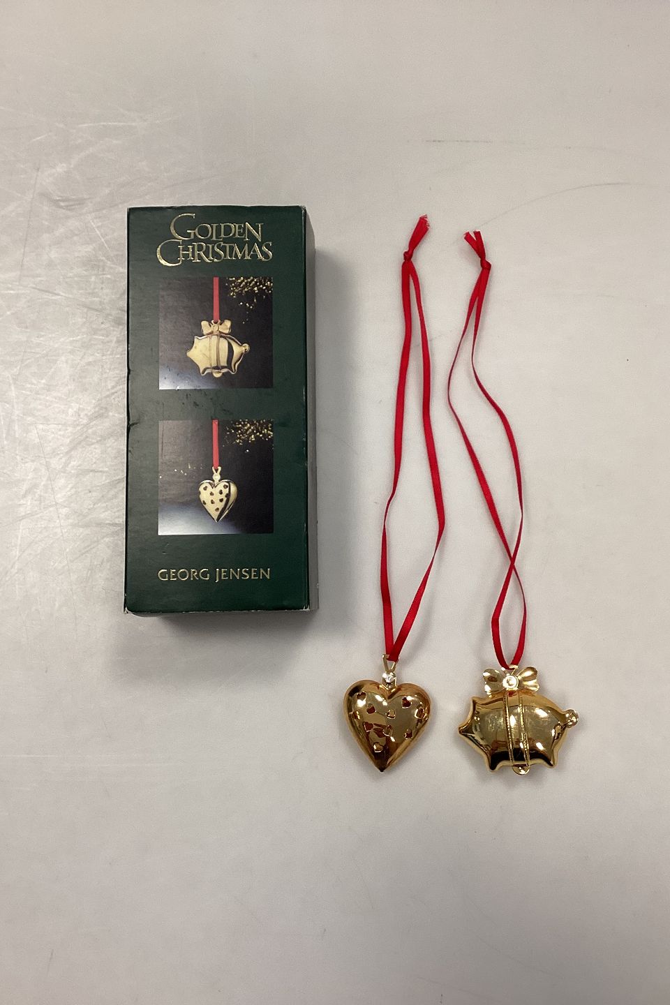 Georg Jensen Golden Christmas Holiday Ornament - Christmas Pig and Heart 2003