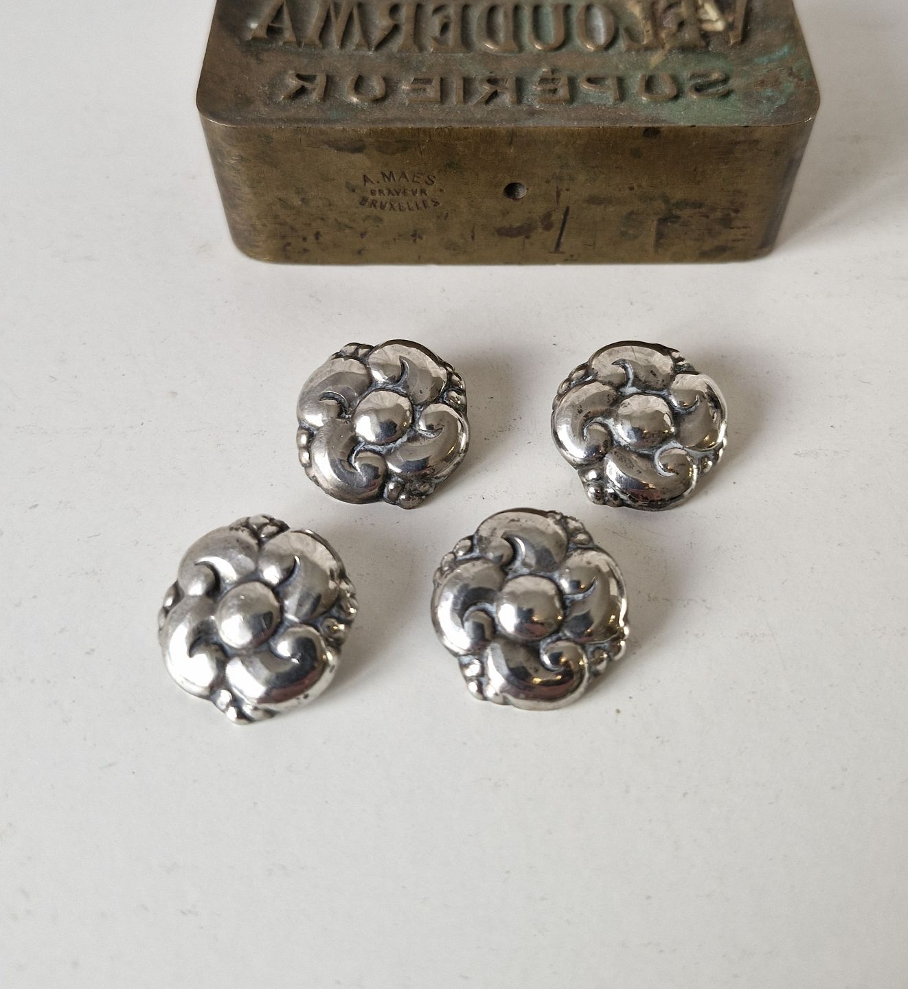 Evald Nielsen set of four silver buttons in the art nouveau style.