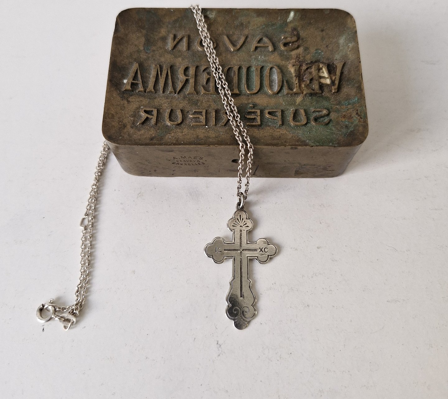 The cross itself is stamped 813L. The chain is stamped 830s. Measurements of the cross 2.3 x 4 cm.