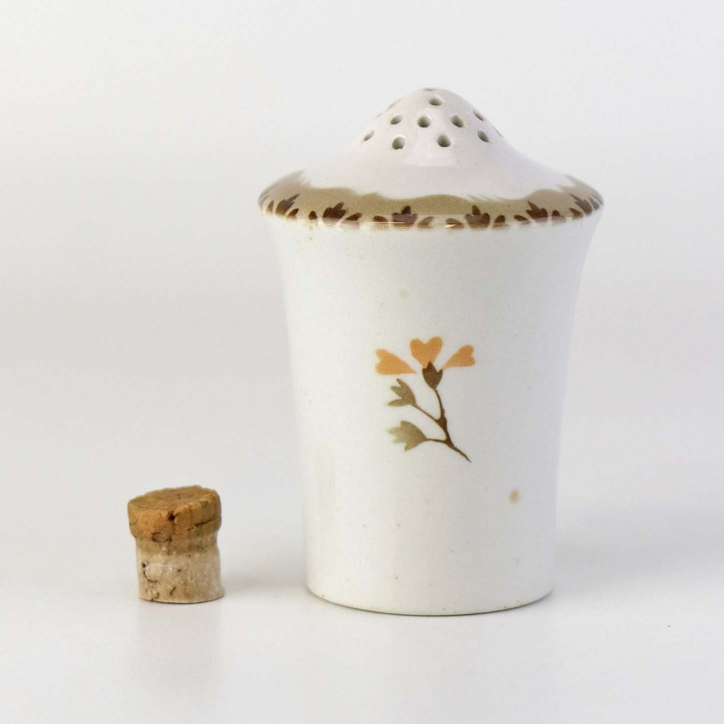 Text available in Danish: Salt strø i fajance med korkprop fra stellet Convolvulus Snerle.