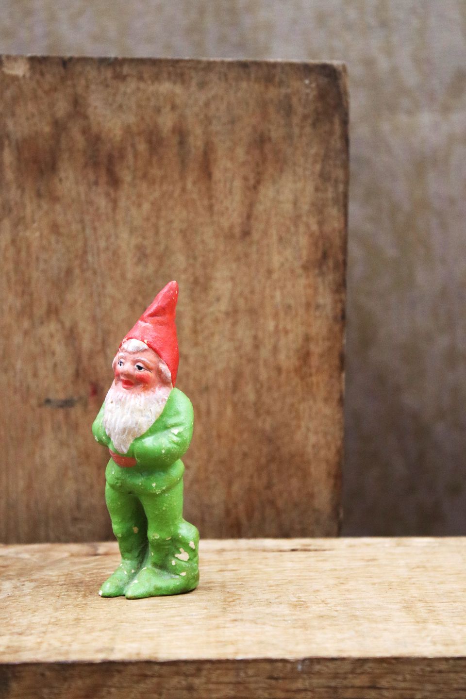 Decorative old painted terracotta Santa Claus with fine patina. H: 9cm.