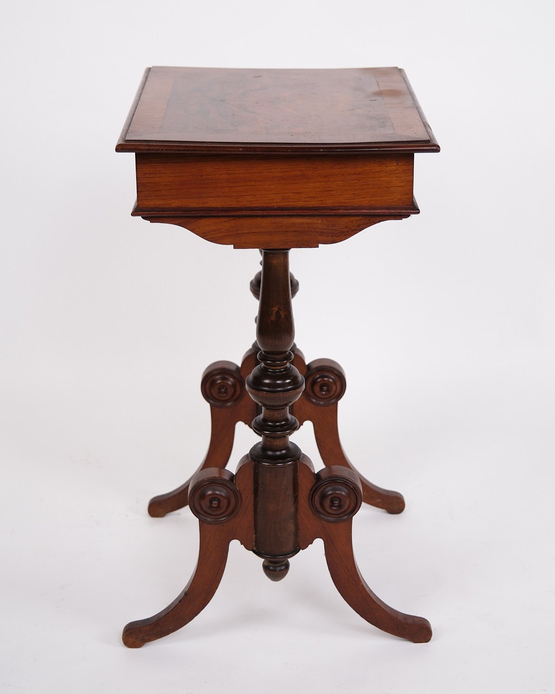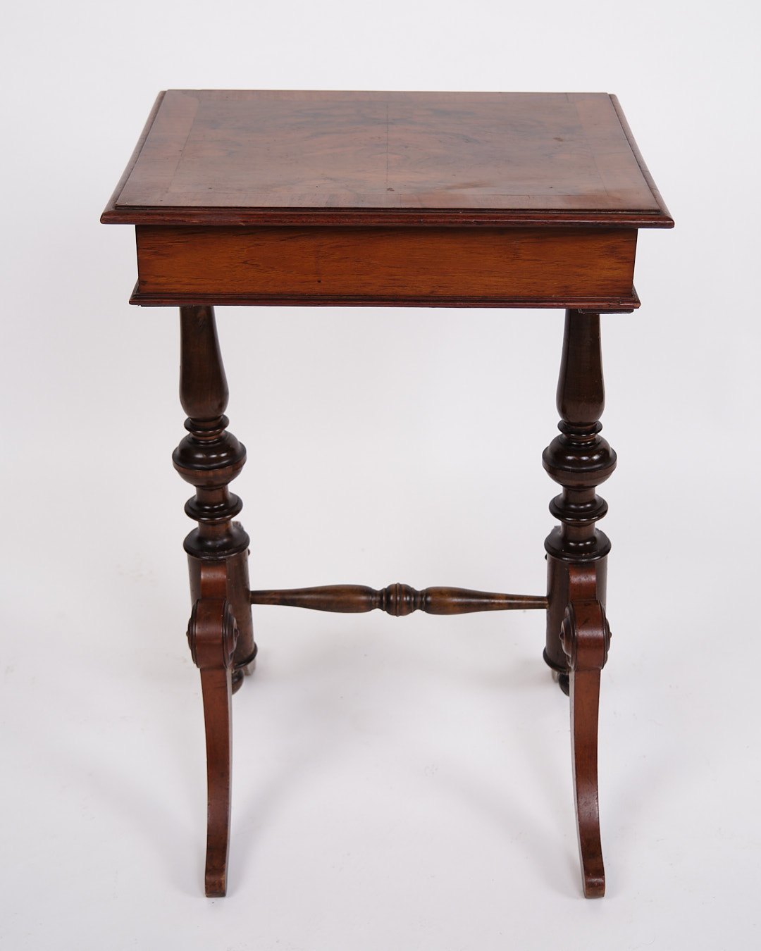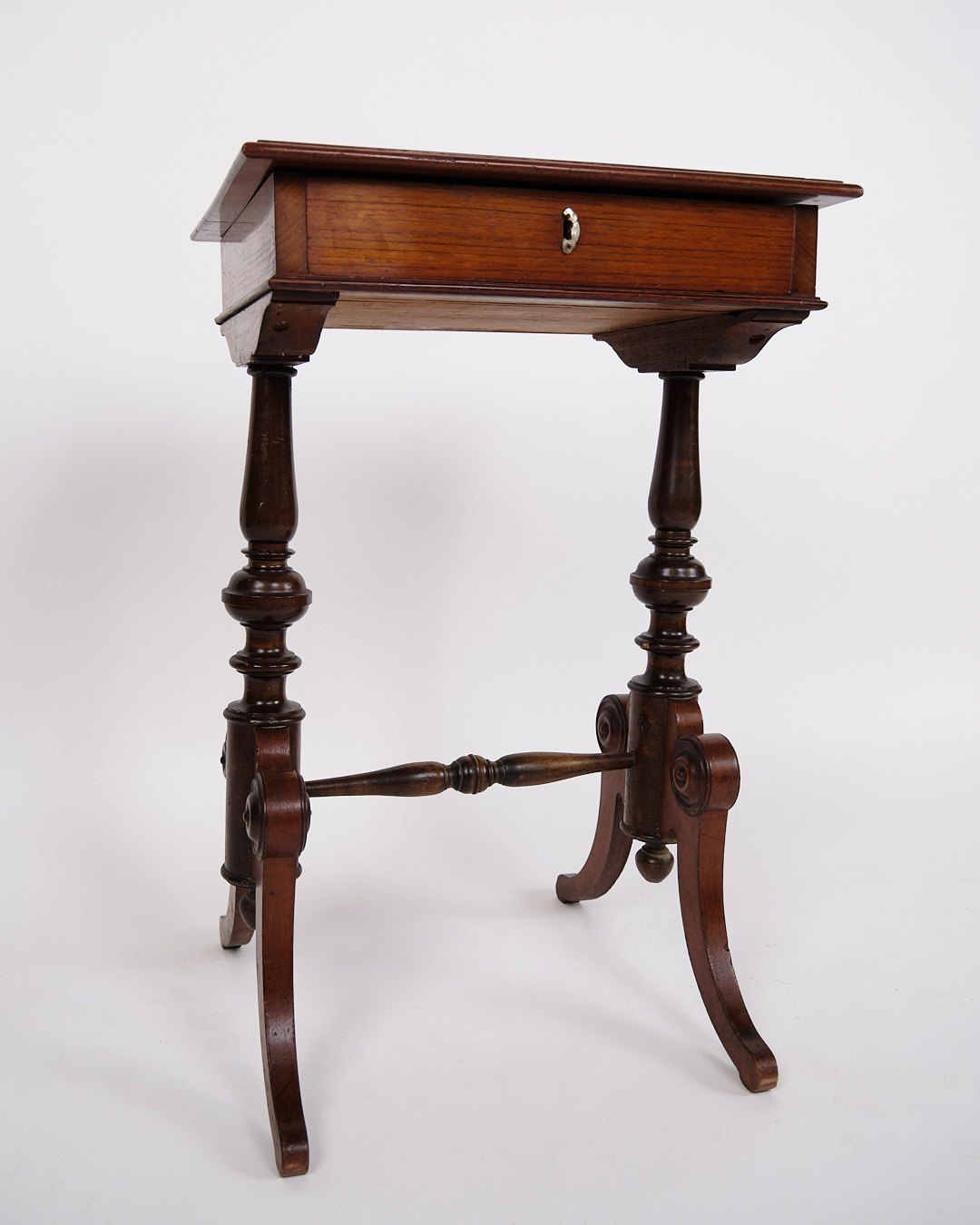 Antique Side Table With Drawer - Hand Polished Mahogany - Turned Legs - Year 1880s