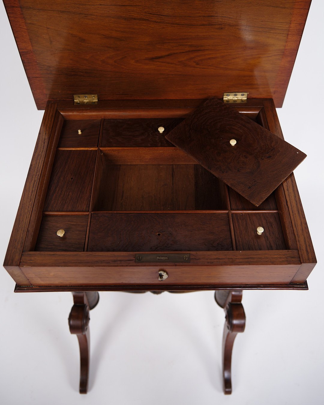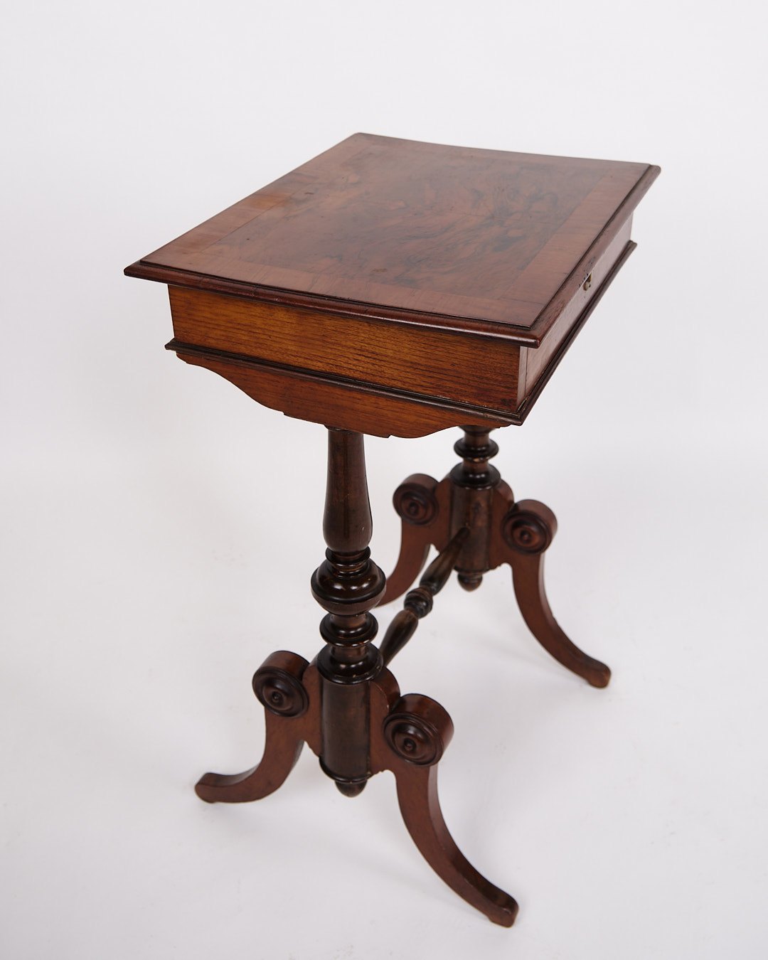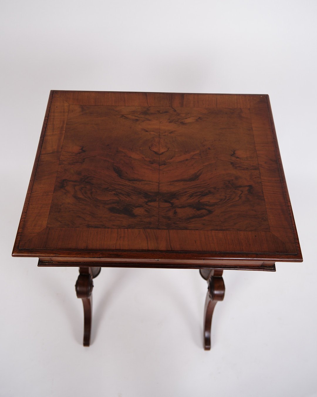 Antique side table in hand-polished mahogany from the 1880s. With drawer and turned legs.