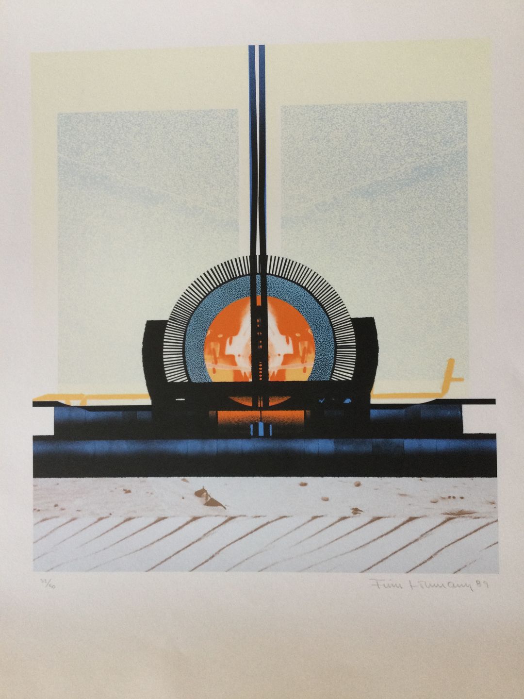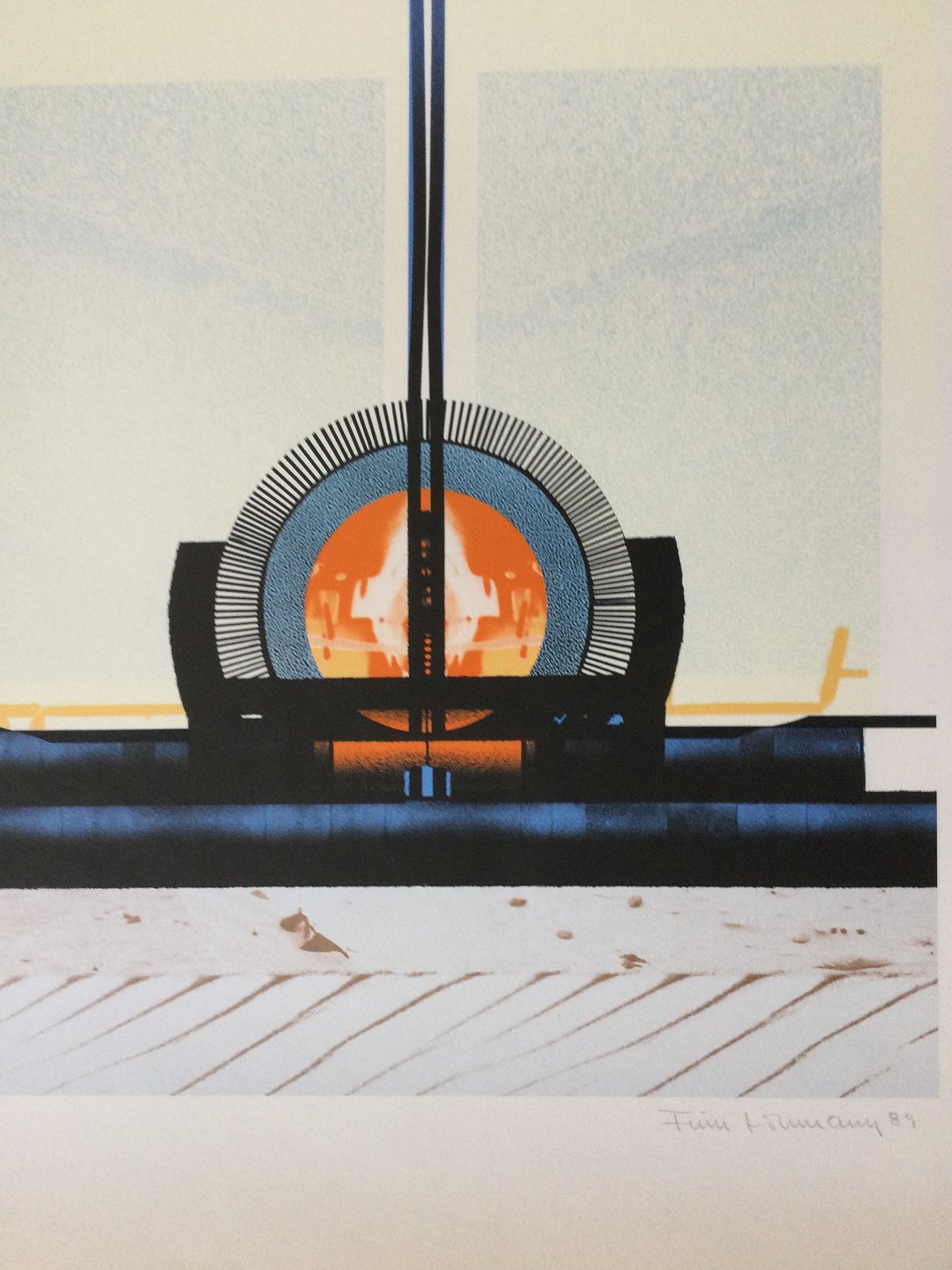 Text available in Danish: Farvelitografi af Finn Lohmann - Komposition 1989