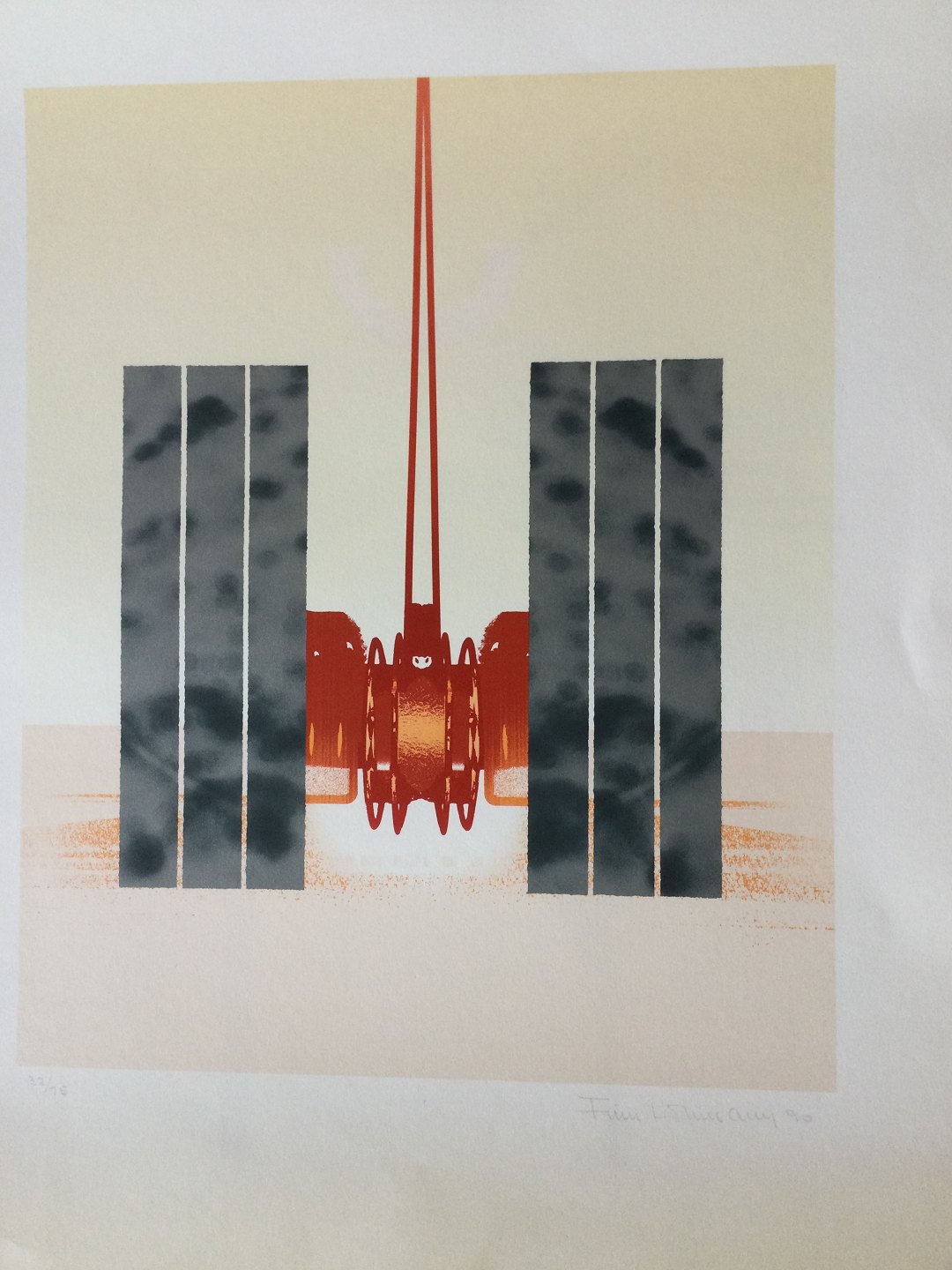 Text available in Danish: Farvelitografi af Finn Lohmann - Komposition 1990