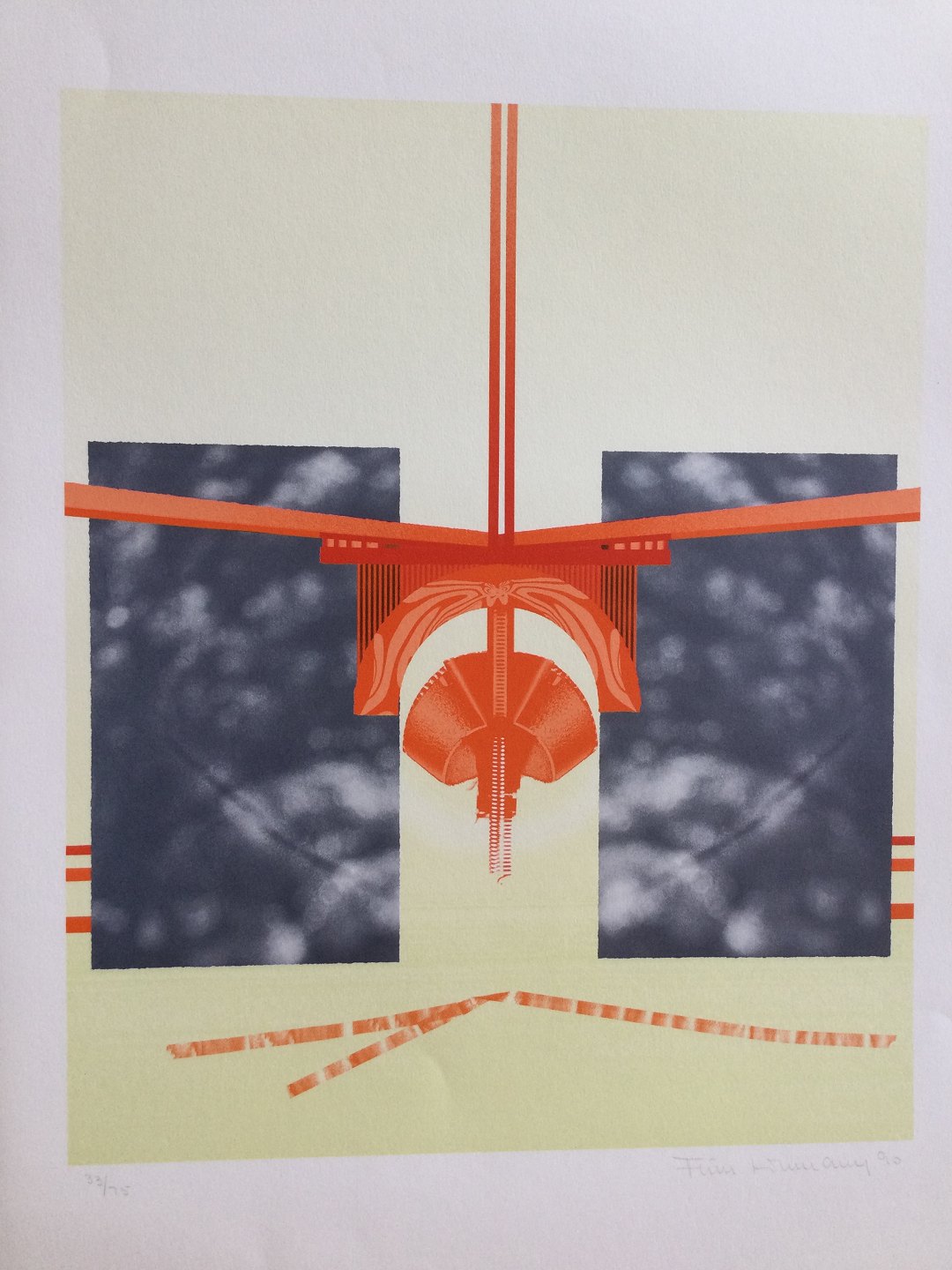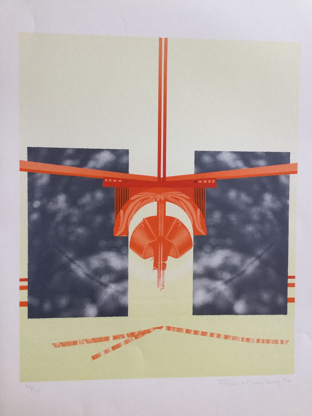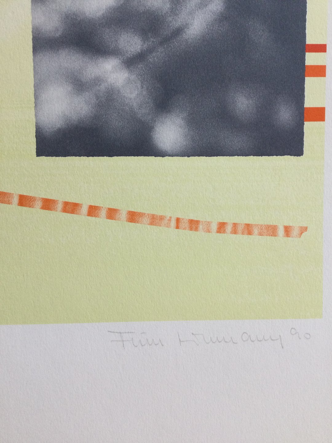 Text available in Danish: Farvelitografi af Finn Lohmann - Komposition 1990