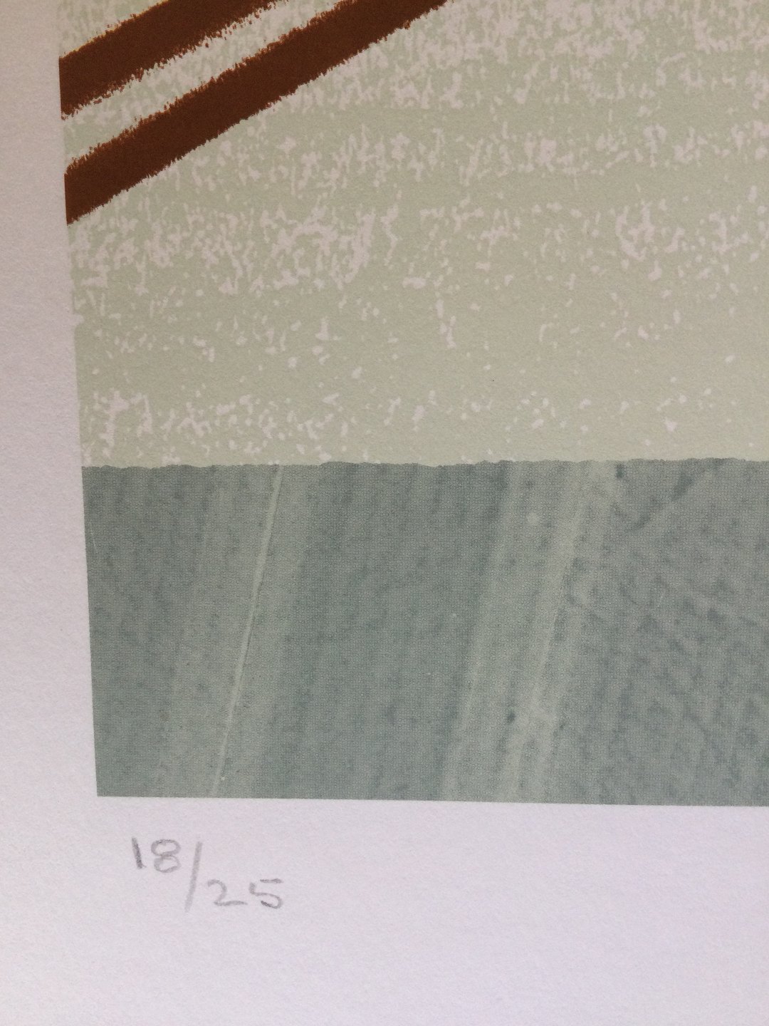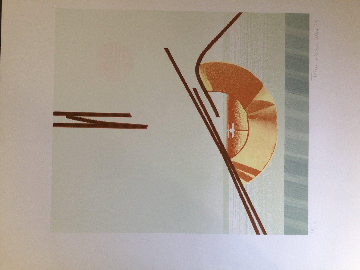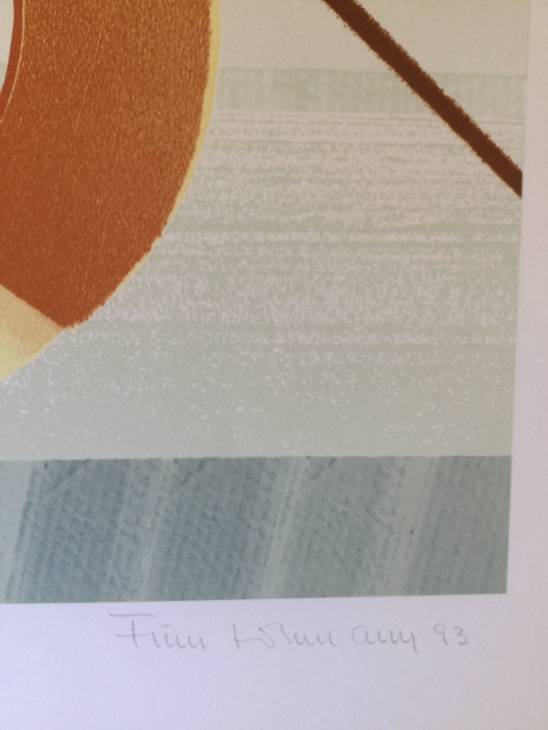 Text available in Danish: Farvelitografi af Finn Lohmann - Komposition 1993.