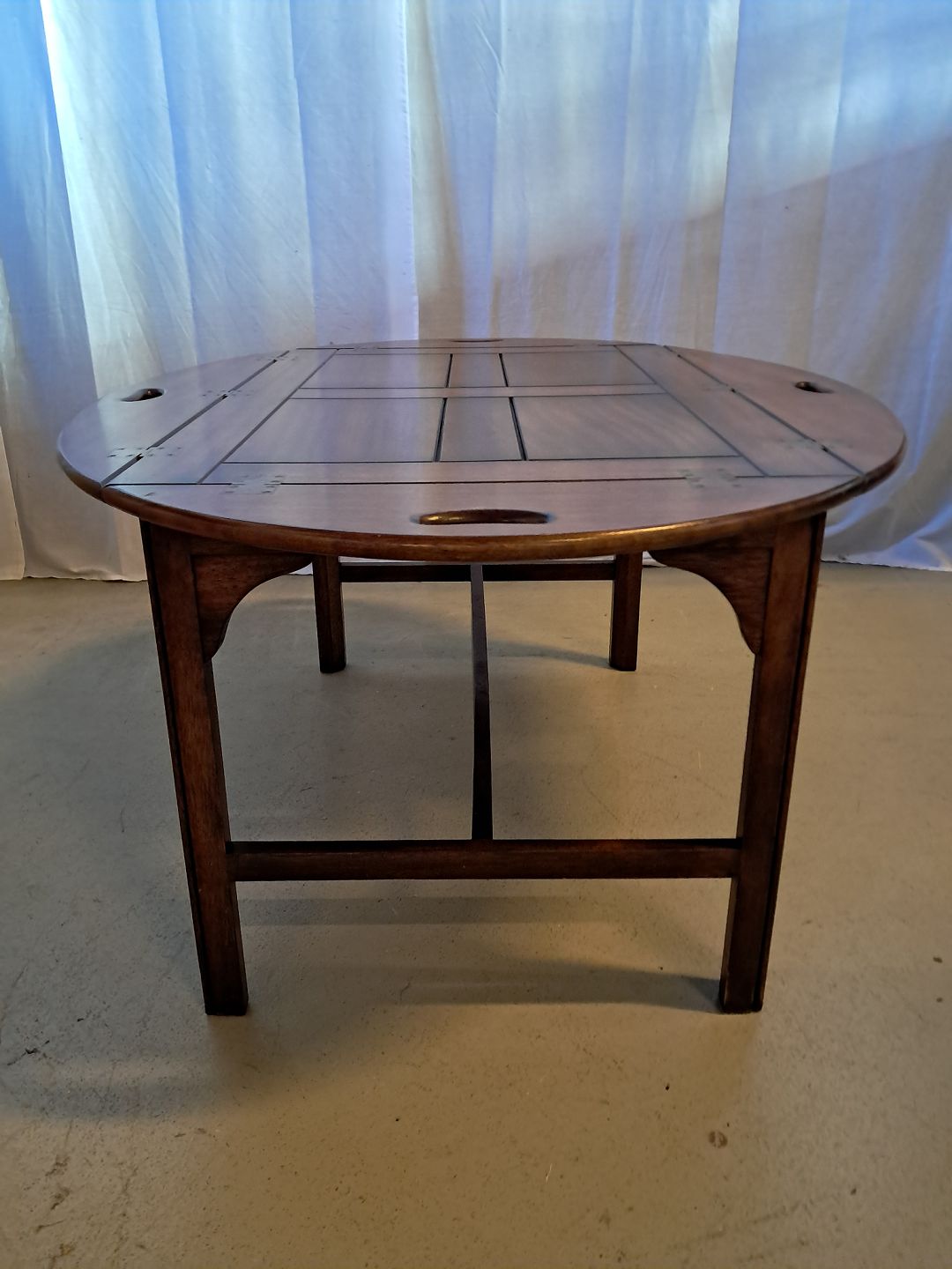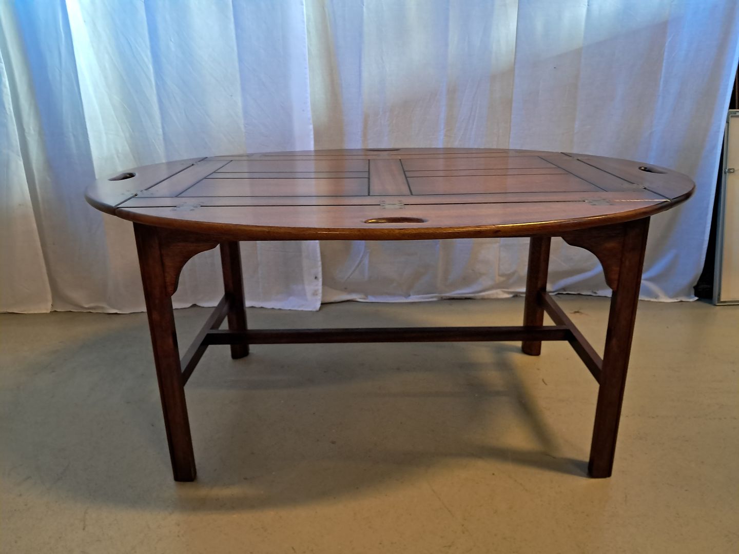 Sofabord i massivt og fineret mahogni, fra 1980erne.