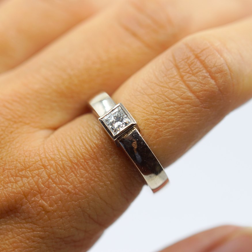 Birgitte Munch; A diamond ring in 14k white gold set with a diamond. Diamond 0,60 ct. Colour: Top Wesselton. Clarity: VVS.
