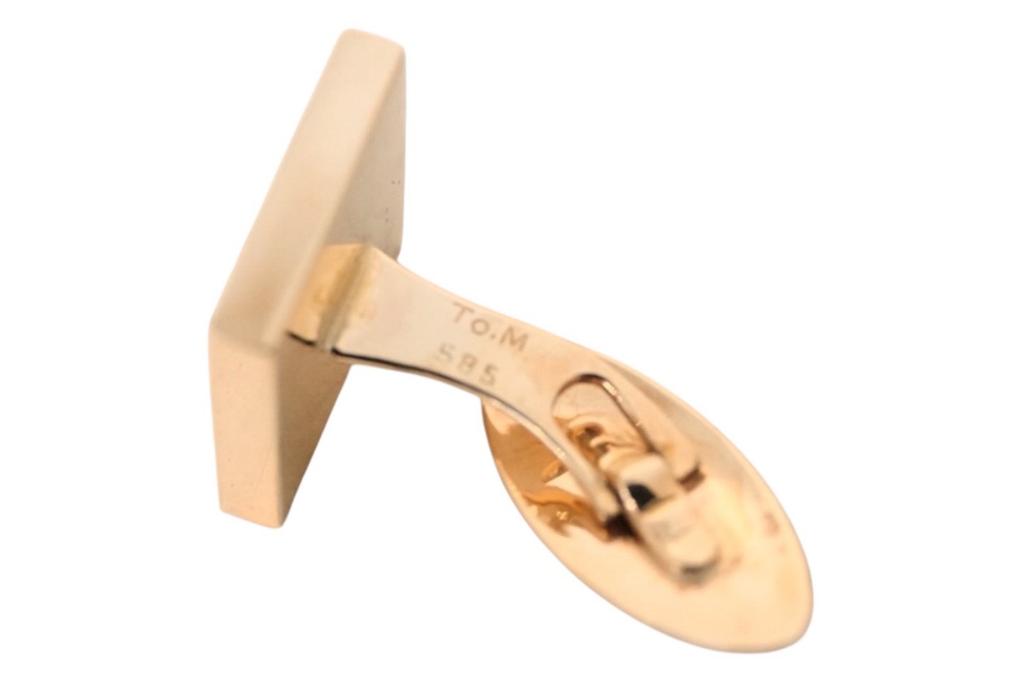 Hallmarked "To.M 585S". Tomo guld og solv was a silversmith in Horsholm from 1968 until 1988. These are from around 1970 to 1980.