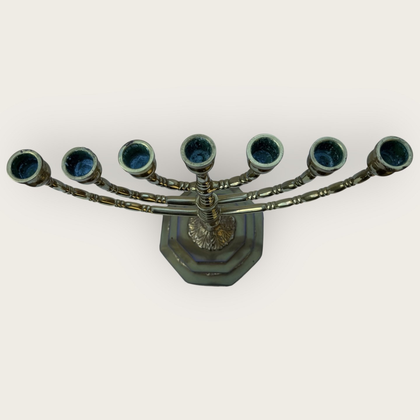 7-armed Brass candlestick, 33.5cm high, 30.5cm wide *Nice patinated condition*