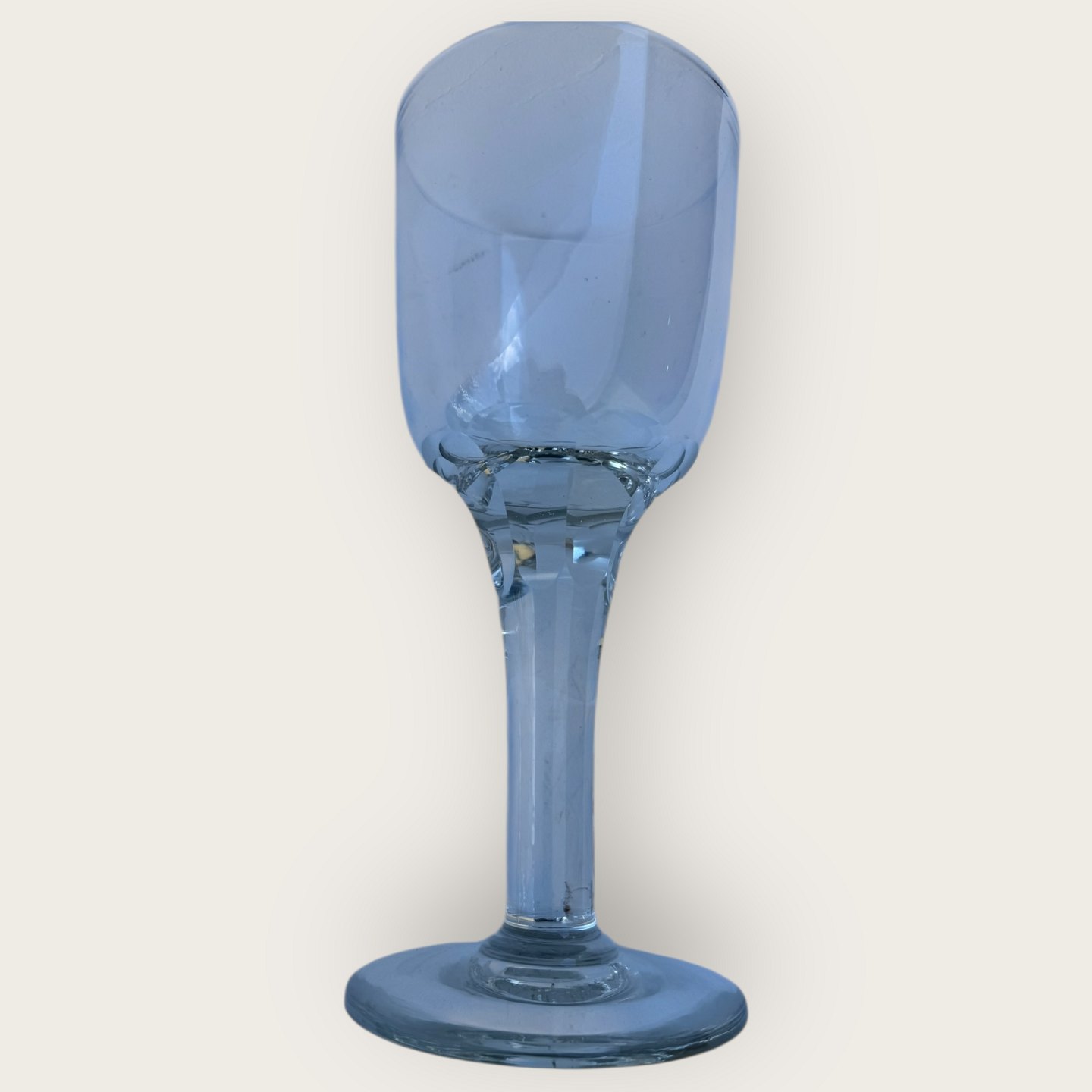 Tall older glasses with a cut stem, wide bowl and thick glass, height 21.3cm, diameter 9cm