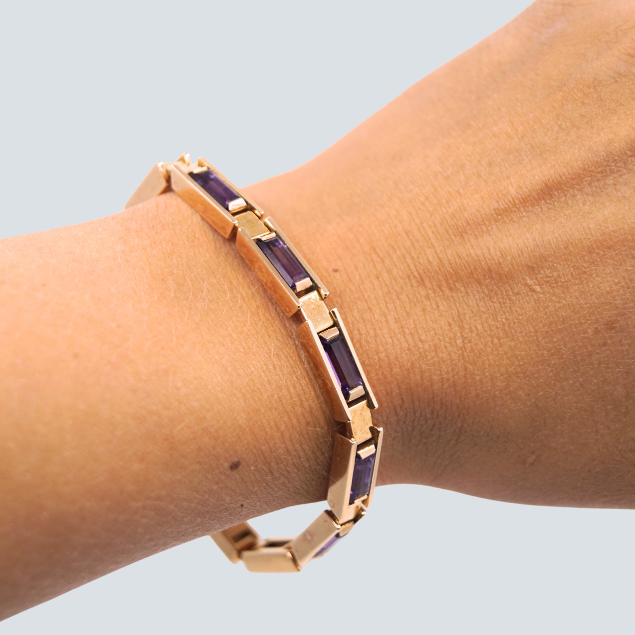 Sven Haugaard; Bracelet in 14k gold set with amthyst.