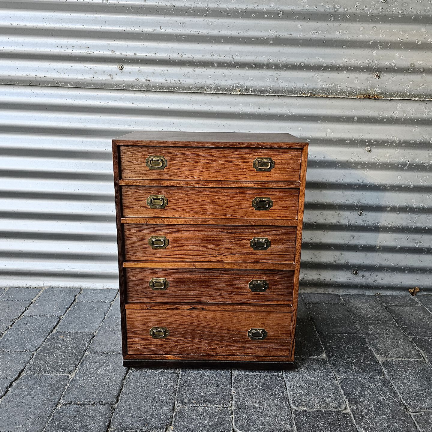 Kommode i palisander med 5 skuffer med messing greb