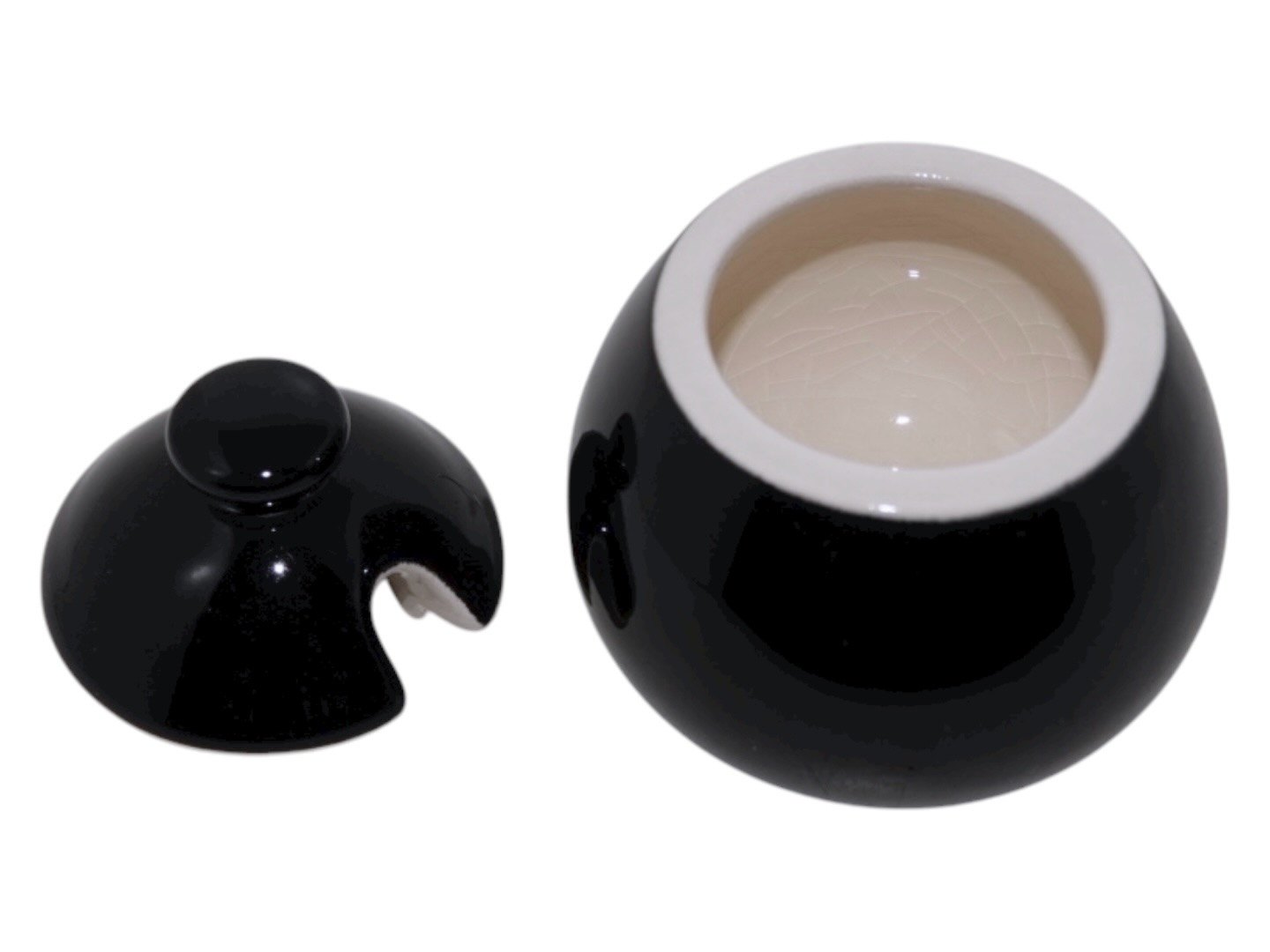 There is a born with glazed chip on the inside of the inside of the lid, please see the last picture, otherwise perfect condition.