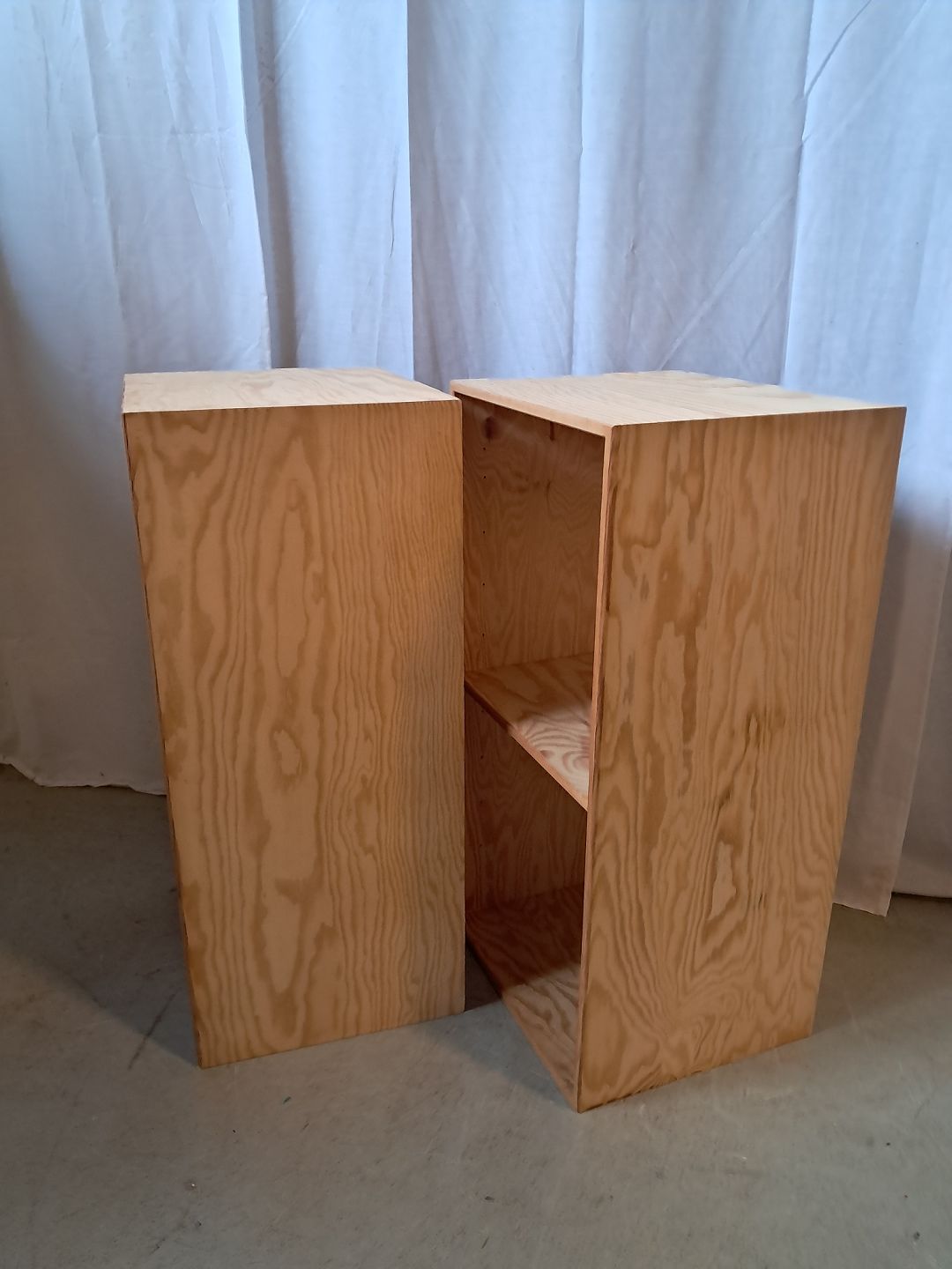 2 Reolkasser i krydsfiner, fra 2000erne.