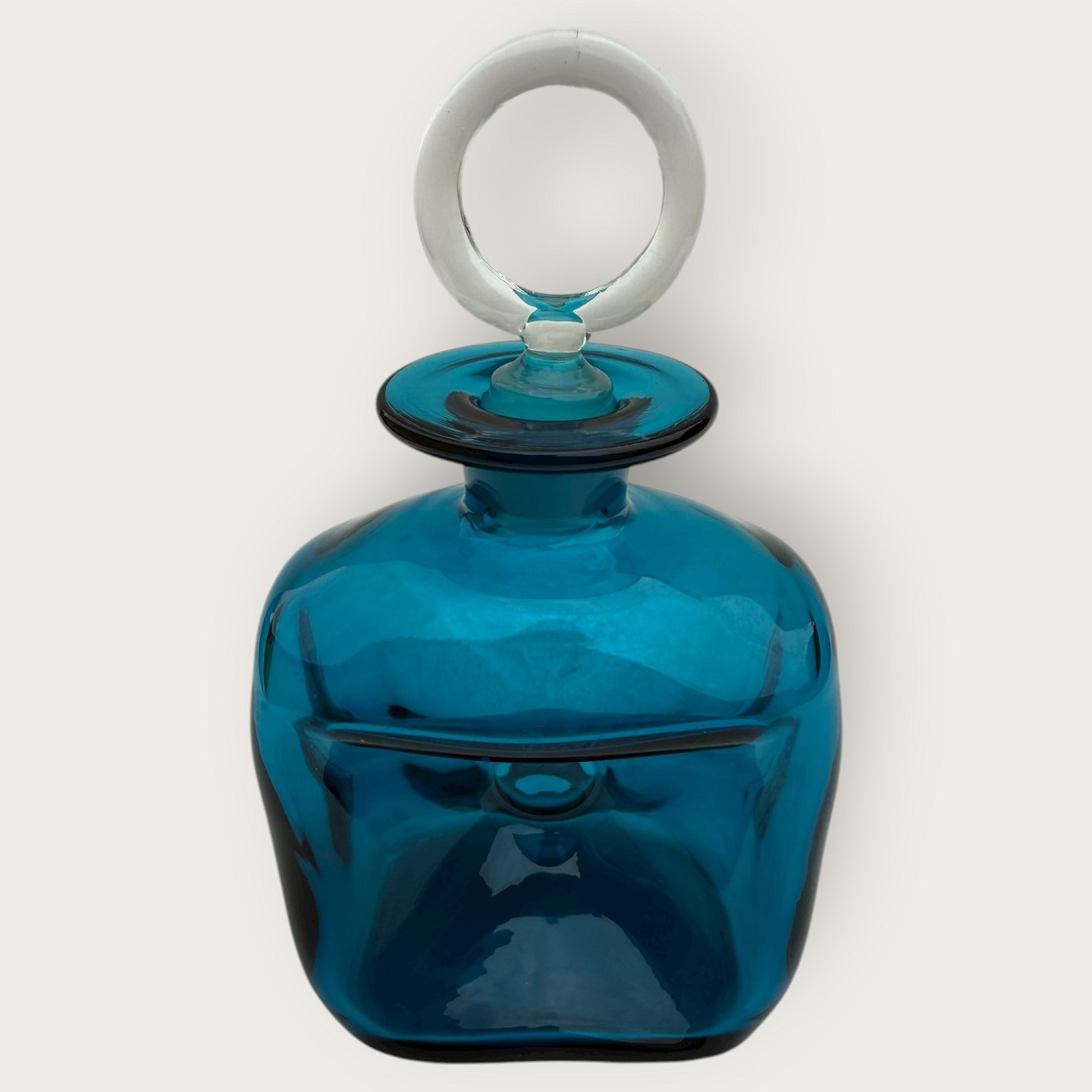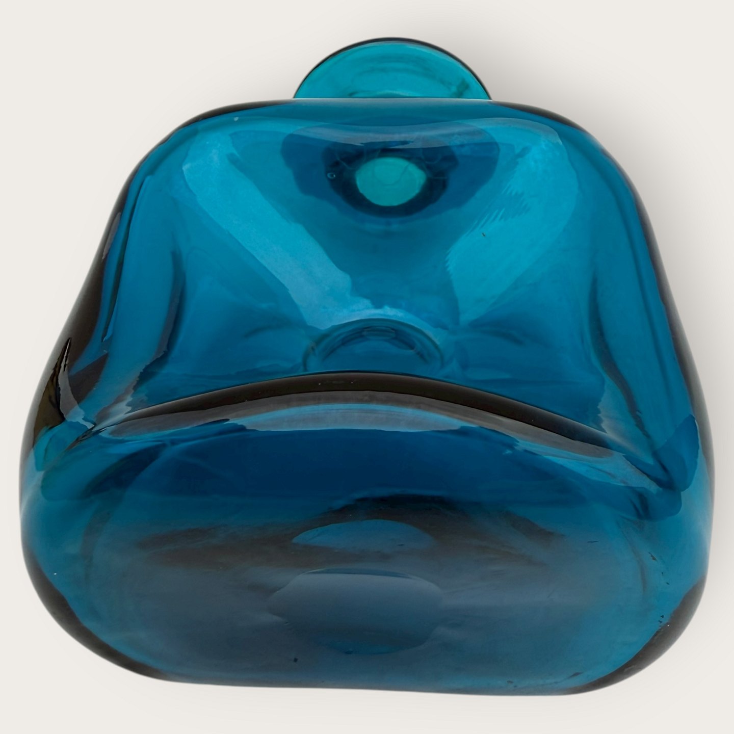 Kastrup Glassworks, Blue cluck bottle with flat clear stopper, 19x11x7cm *nice used condition*