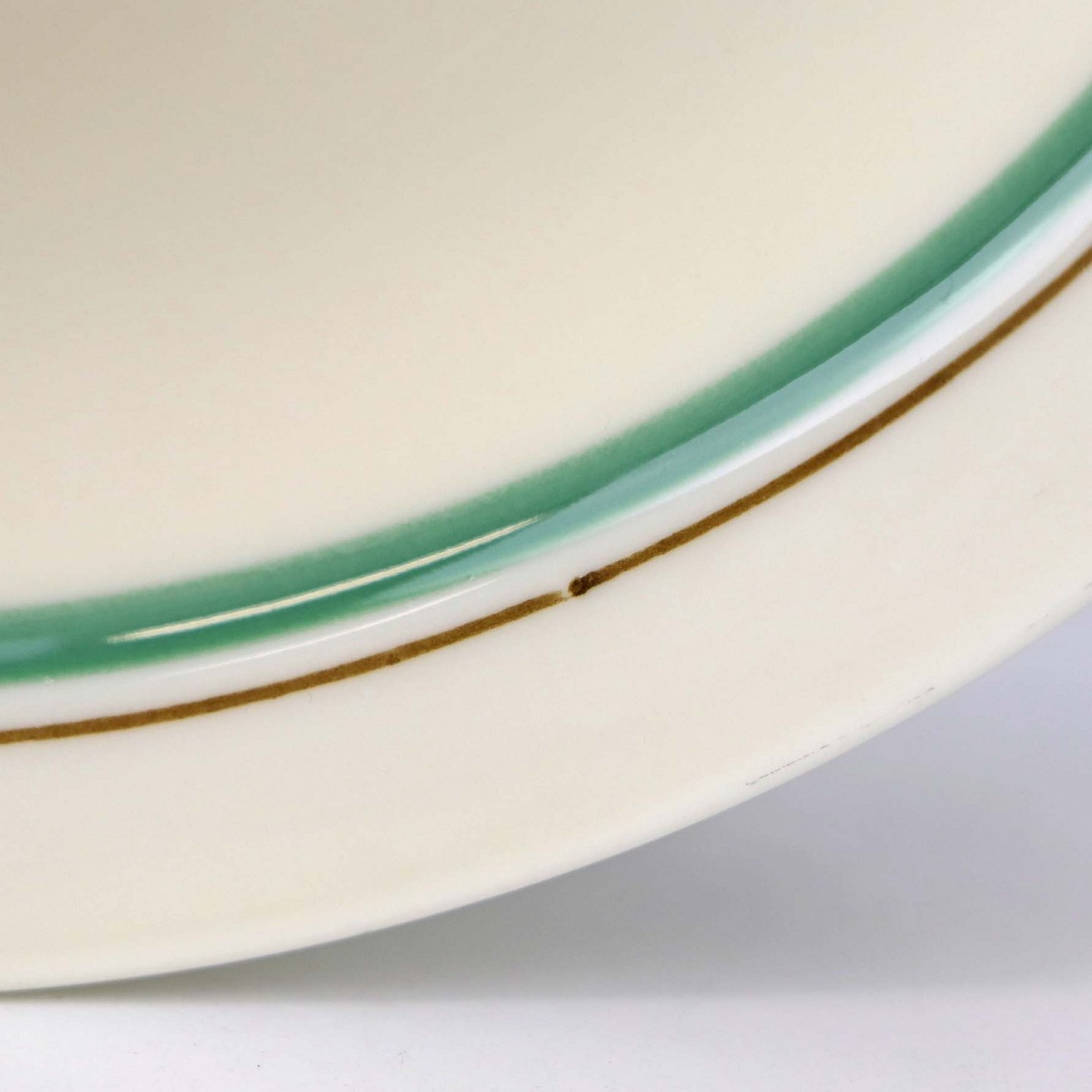 Service i glat cremefarvet porcelæn med grøn og sort kantstreg samt dekoration af blomster og grene i sort streg.