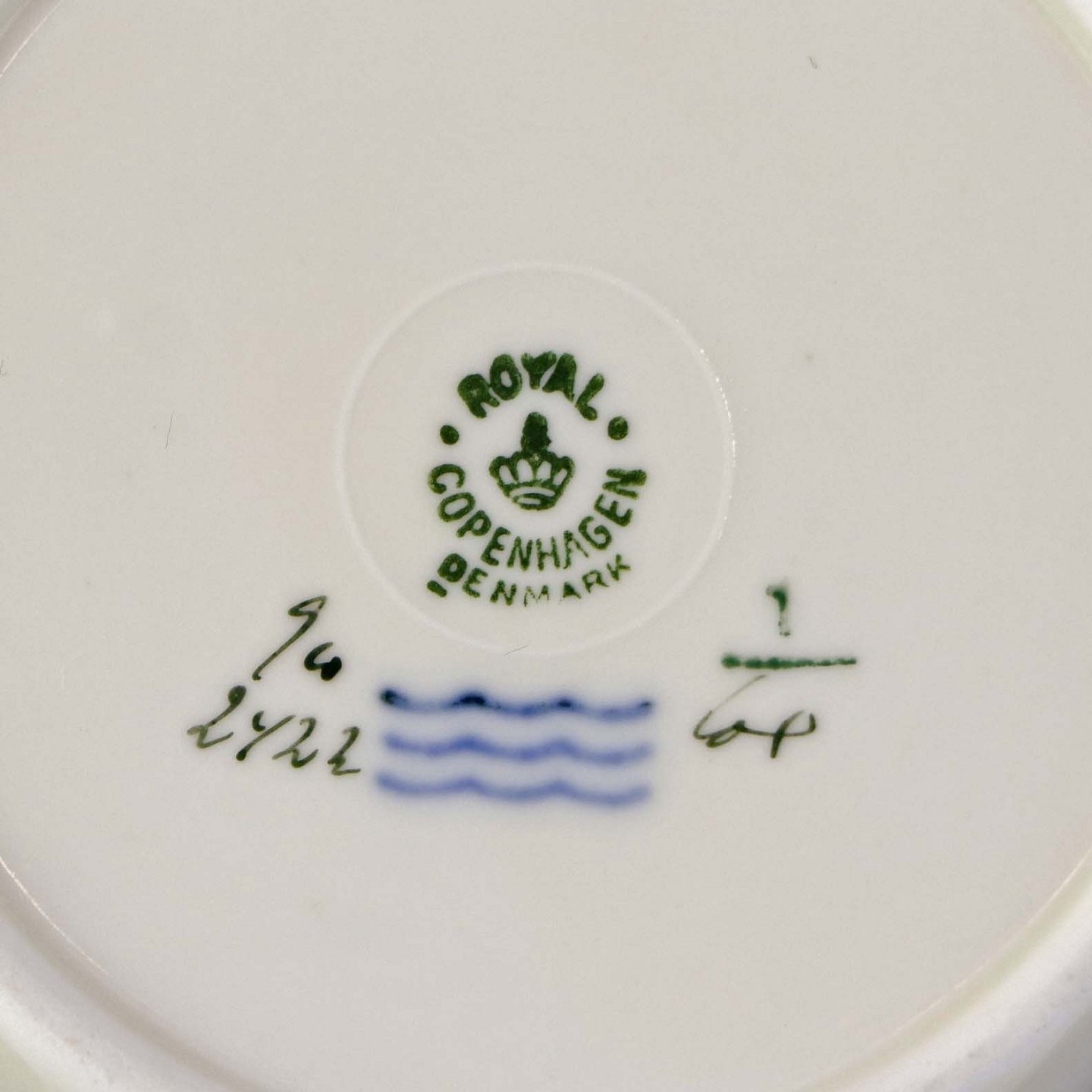 Text available in Danish: Rund kongelig asiet i porcelæn fra stellet Frijsenborg nr. 910/2422