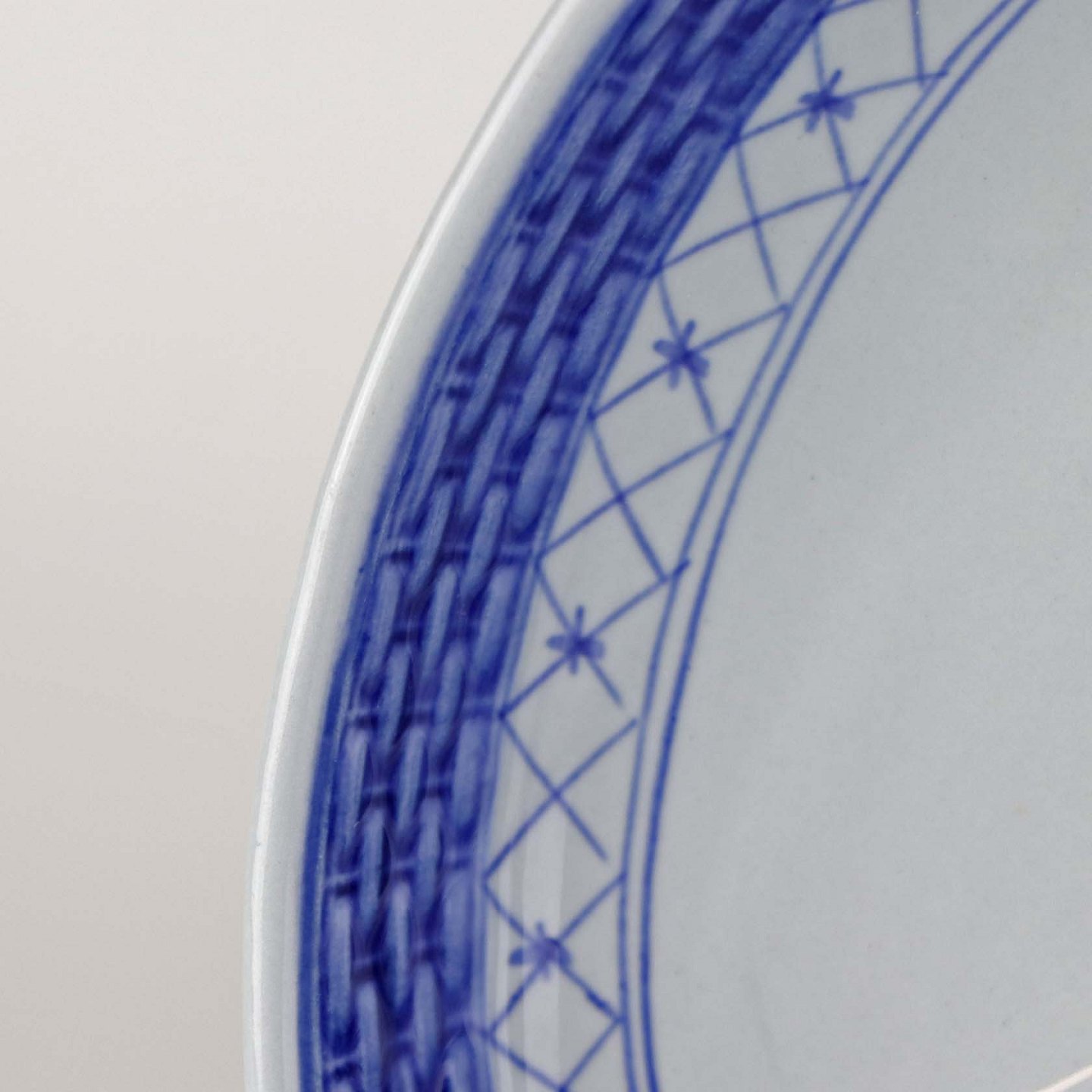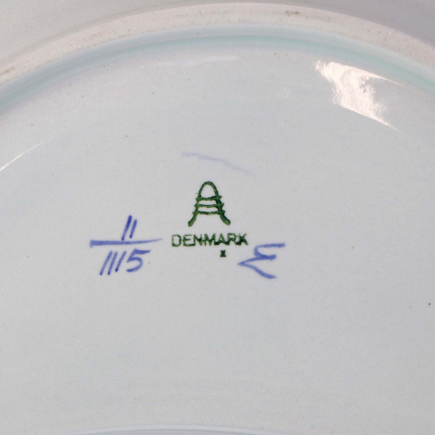 Glat Lyst fajance med blå dekoration af blomster og blå bort.