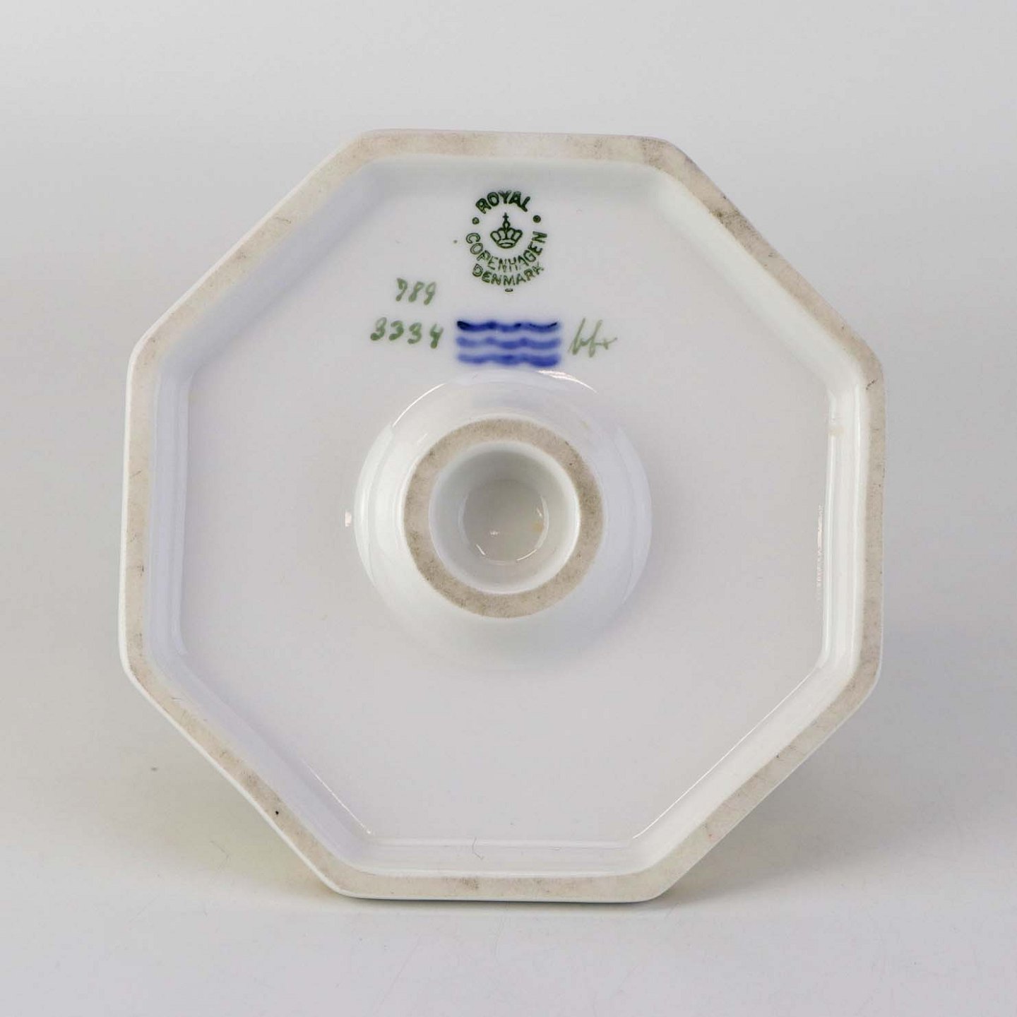 Kongelig lysestage med syvkantet fod i porcelæn fra stellet Bernstorff. Nr. 789/3334
