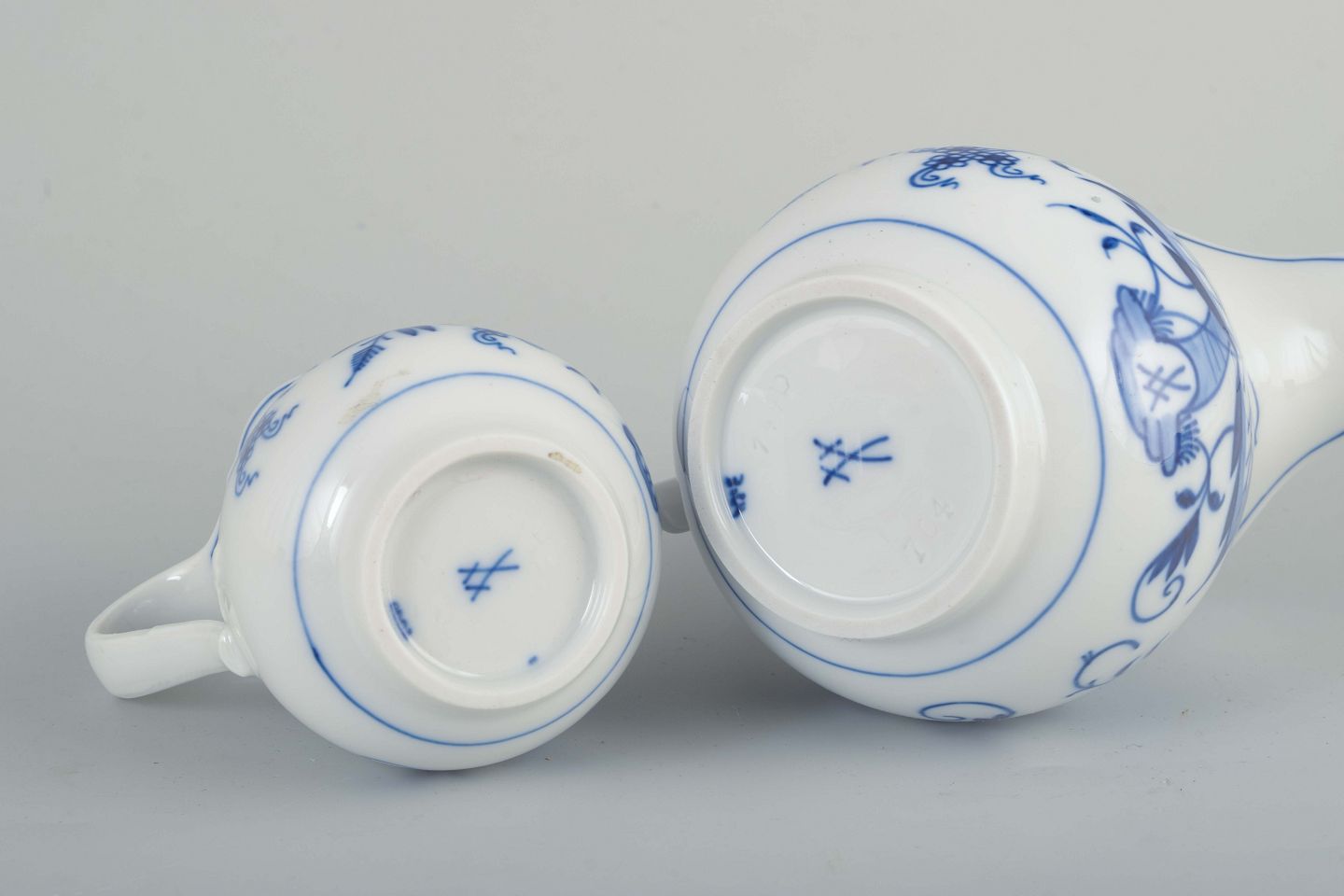 Meissen is Europe’s oldest porcelain manufactory, founded in 1710. Its characteristic blue-painted decorations, especially the “Zwiebelmuster” (Onion Pattern), are among the most iconic worldwide. Meissen pieces are marked by the crossed swords on the base, a guarantee of authenticity. Different quality marks (such as incised strokes through the swords) indicate grading — 1st quality without flaws, while lower grades denote minor imperfections.