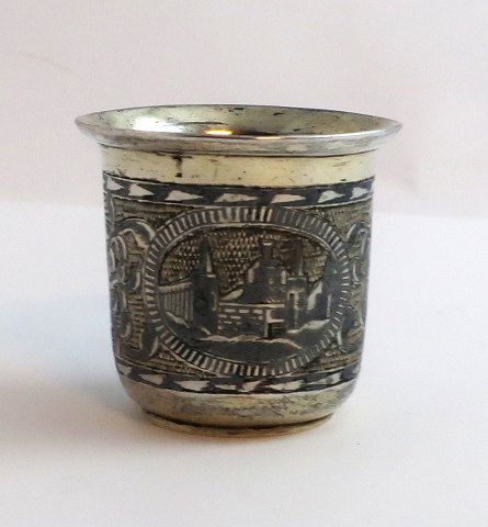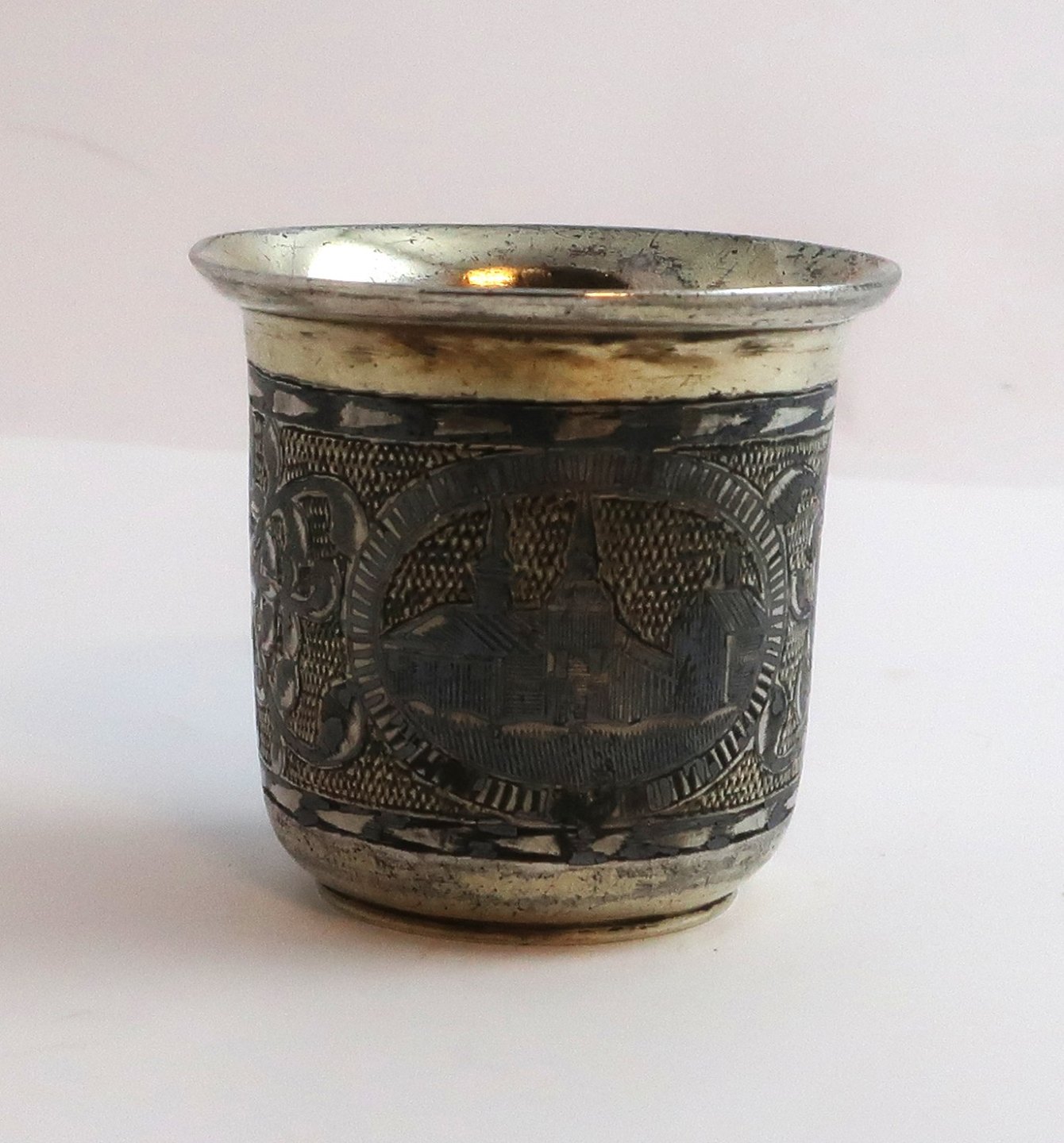 Russia. Small silver goblet with niello (84). Height 5 cm. Diameter 5.1 cm. Produced 1833