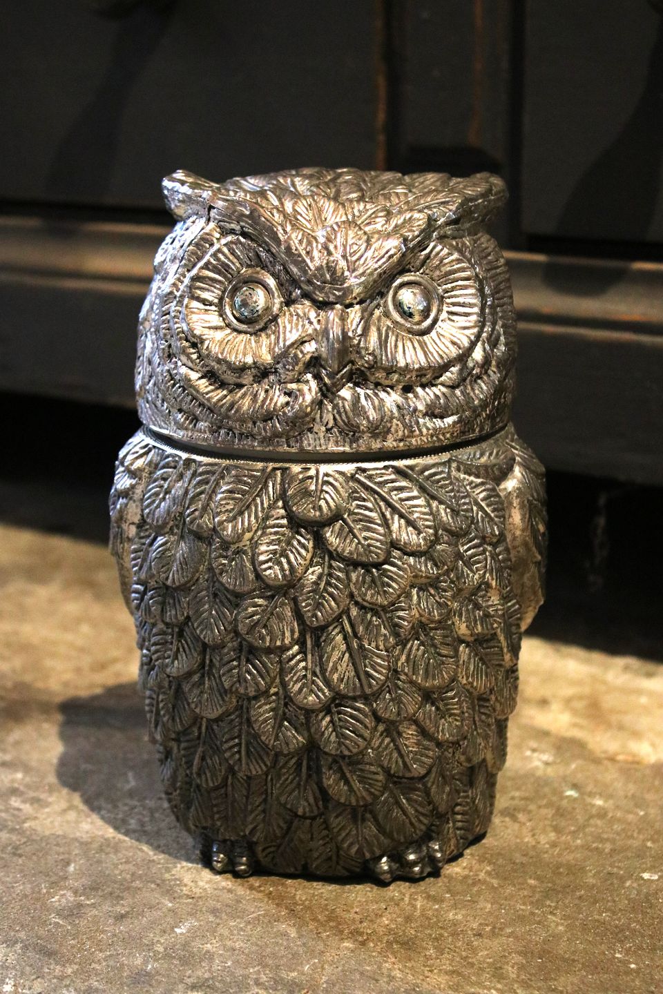Delicious Italian ice bucket designed by Mauro Manetti in the shape of an owl, silver-plated tin from the 60s...