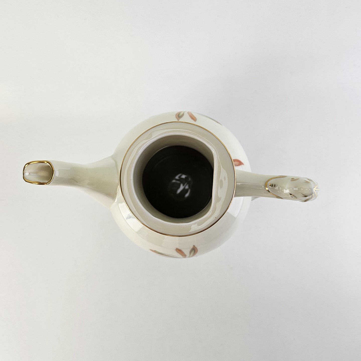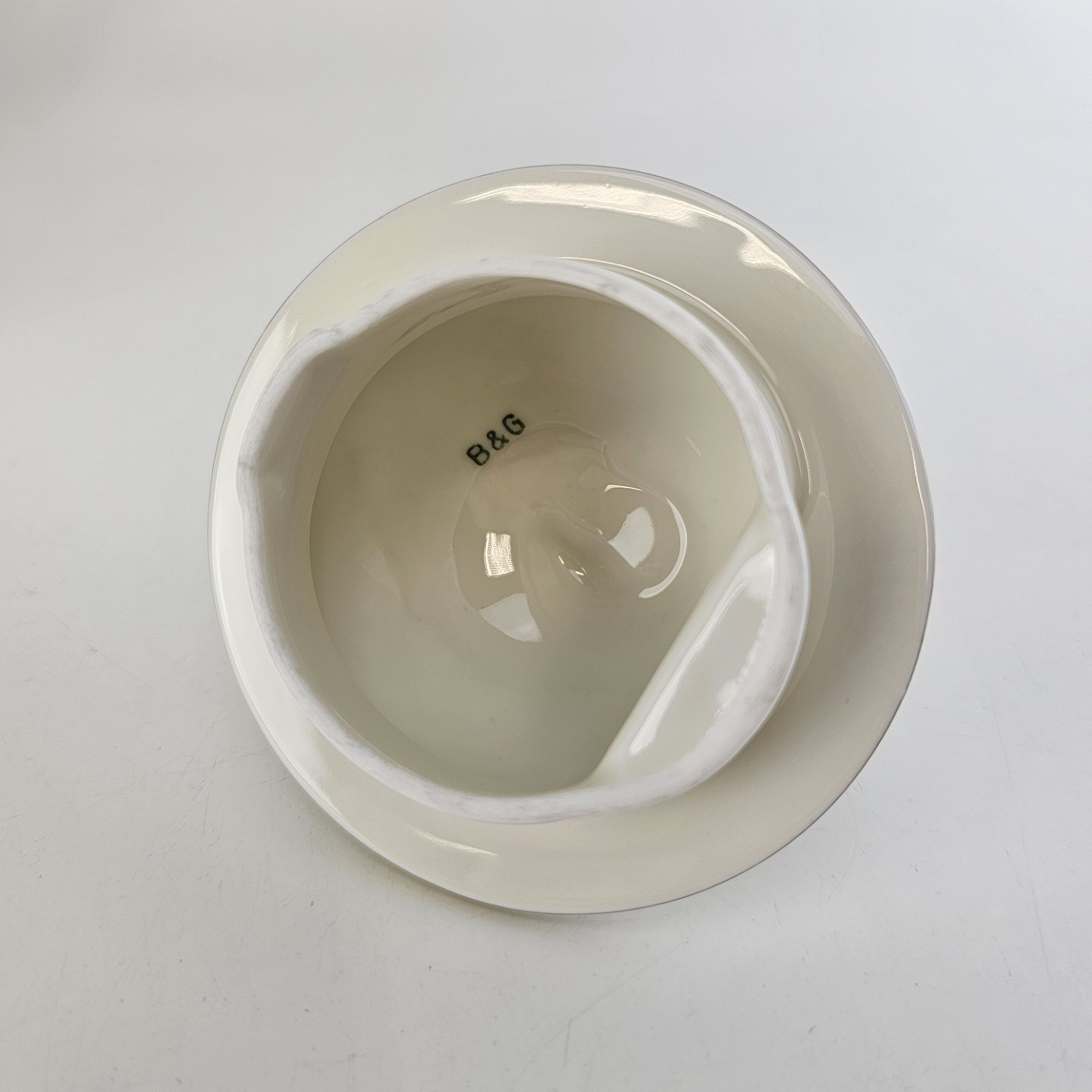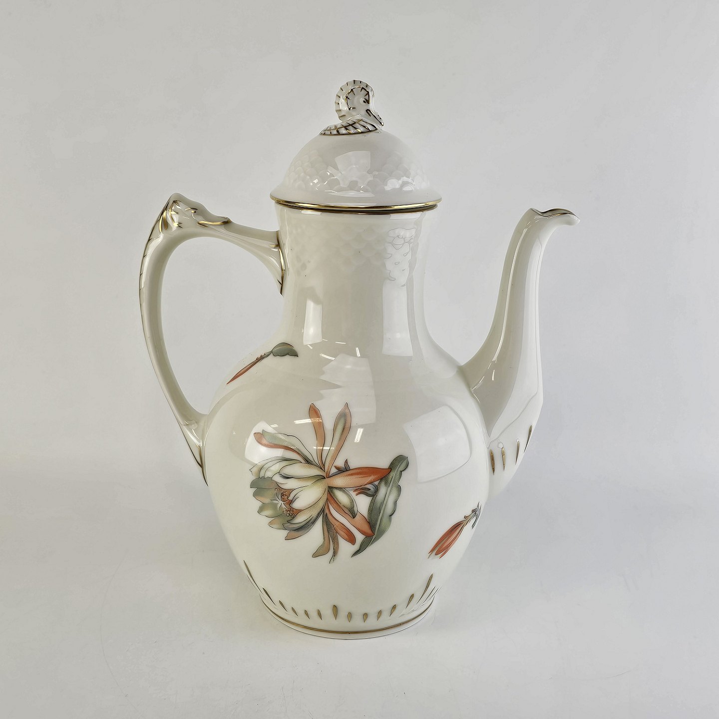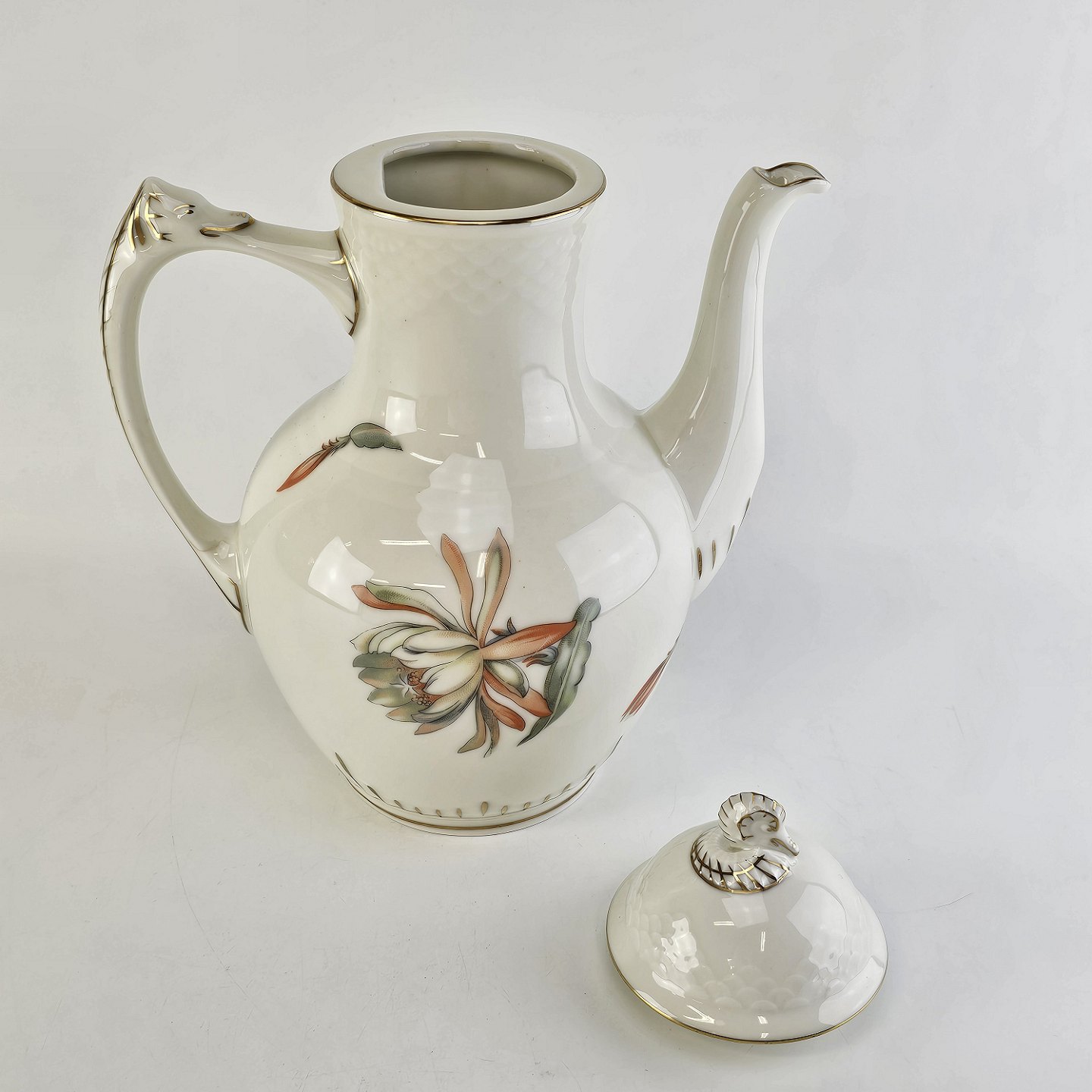 Kaktus er cremefarvet porcelæn i skælform, dekoreret med kaktusblomster og guldkant