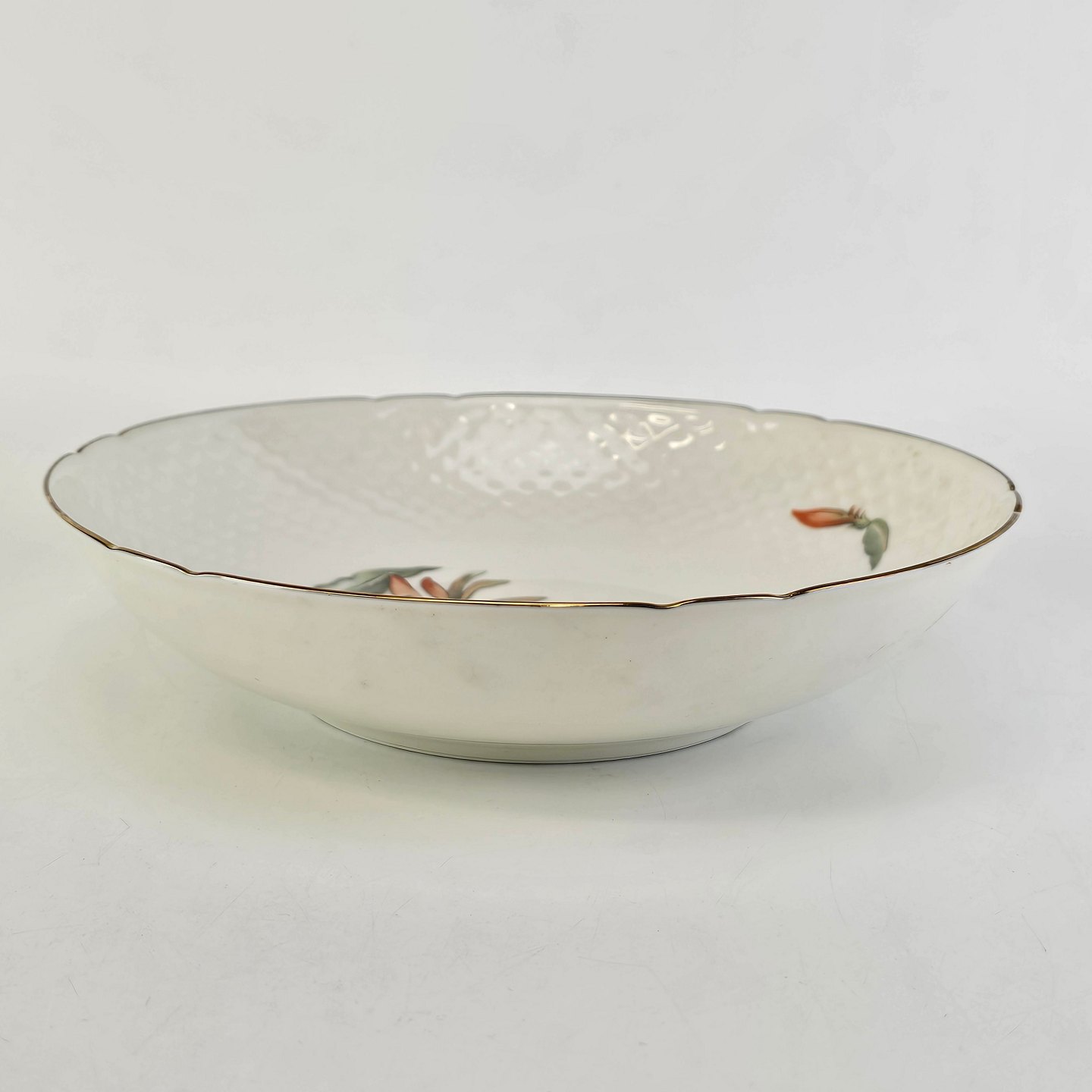 Kaktus er cremefarvet porcelæn i skælform, dekoreret med kaktusblomster og guldkant
