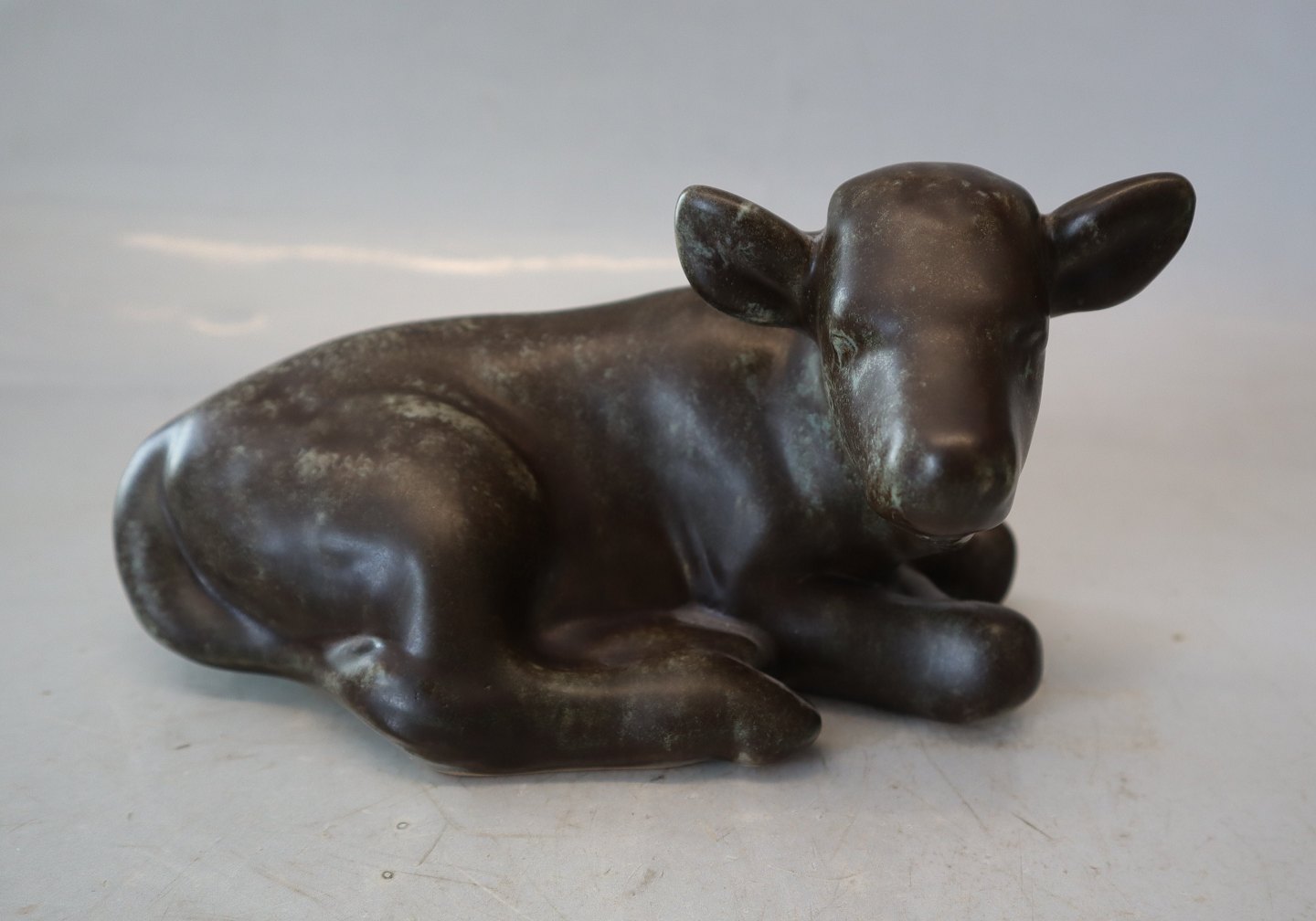 117 Green Glazed Calf 11.5 x 20 cm JohGus, Bornholm Ceramic