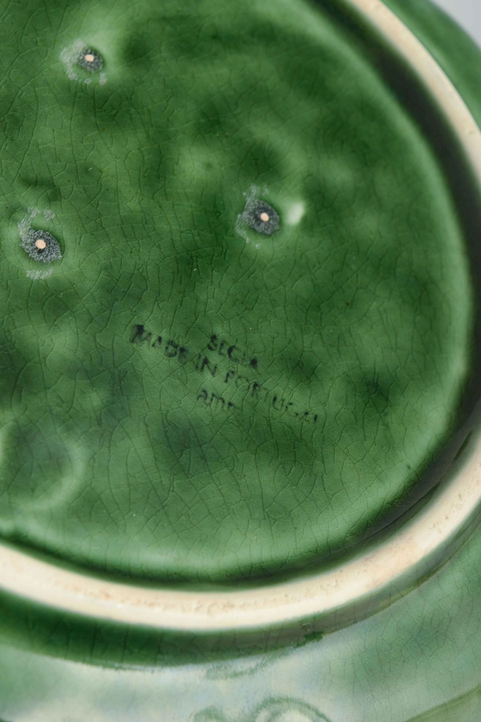 Secla was a renowned Portuguese ceramics manufacturer, founded in 1947 in Caldas da Rainha. The production included both decorative and utilitarian ceramics, often inspired by natural forms and colors. During the 1960s and 70s, Secla became especially well known for its majolica pieces in organic shapes, including the iconic cabbage leaf plates, which are now sought-after collector’s items.