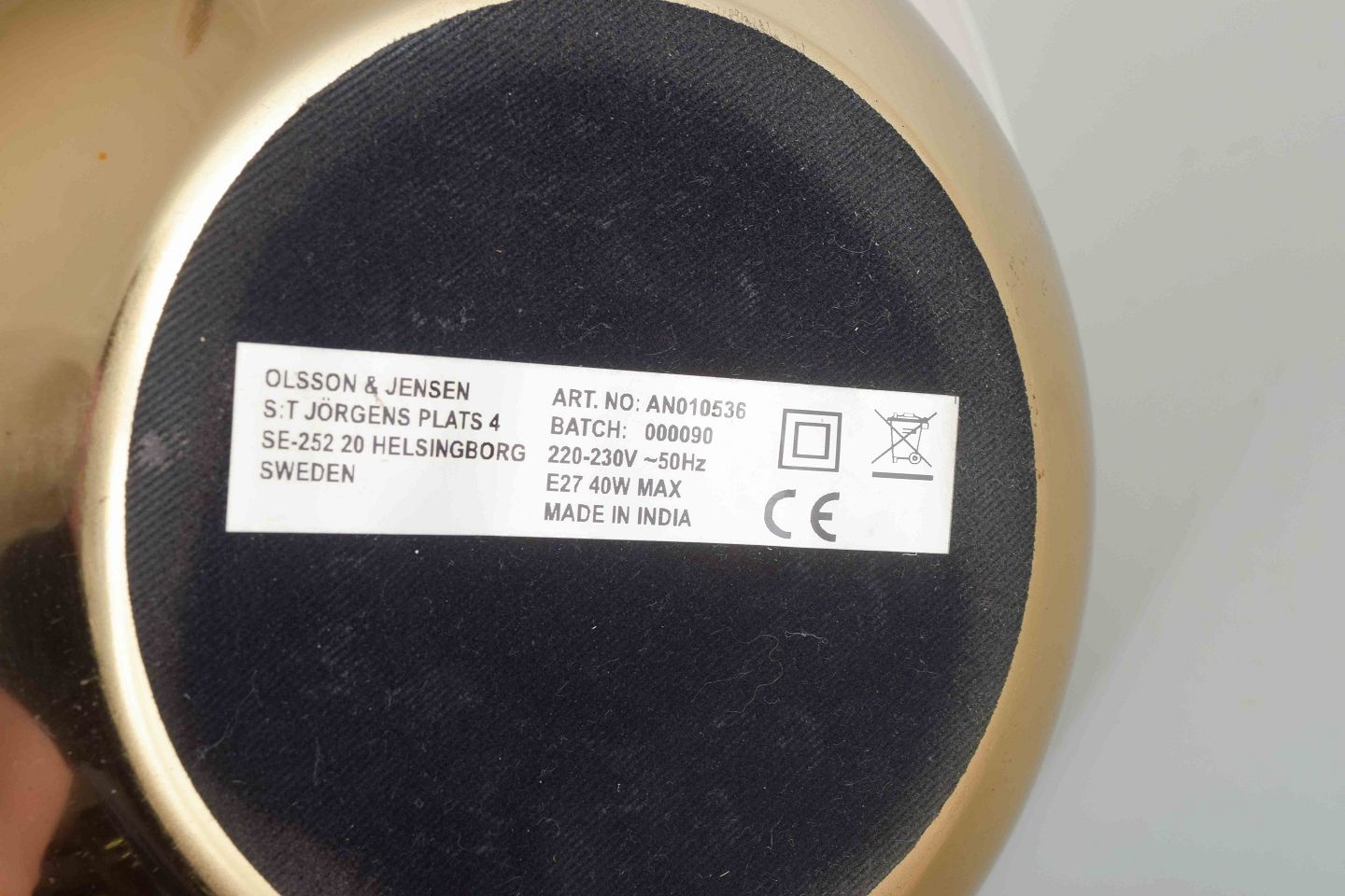 Olsson & Jensen is a Swedish design company based in Helsingborg, known for combining modern and classic forms in home decor. The lamp is produced in India and merges Scandinavian simplicity with international manufacturing, resulting in a contemporary design with a touch of retro inspiration.