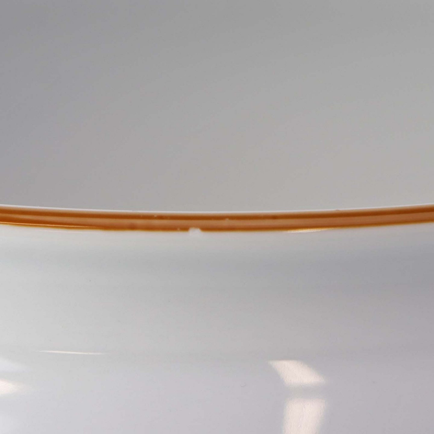Jagtstellet er i glat hvidt porcelæn med gyldenbrun kantdekoration og motiver af forskellige vilde danske dyr i deres naturlige miljø. Stellet er holdt i dæmpede varme efterårsfarver.