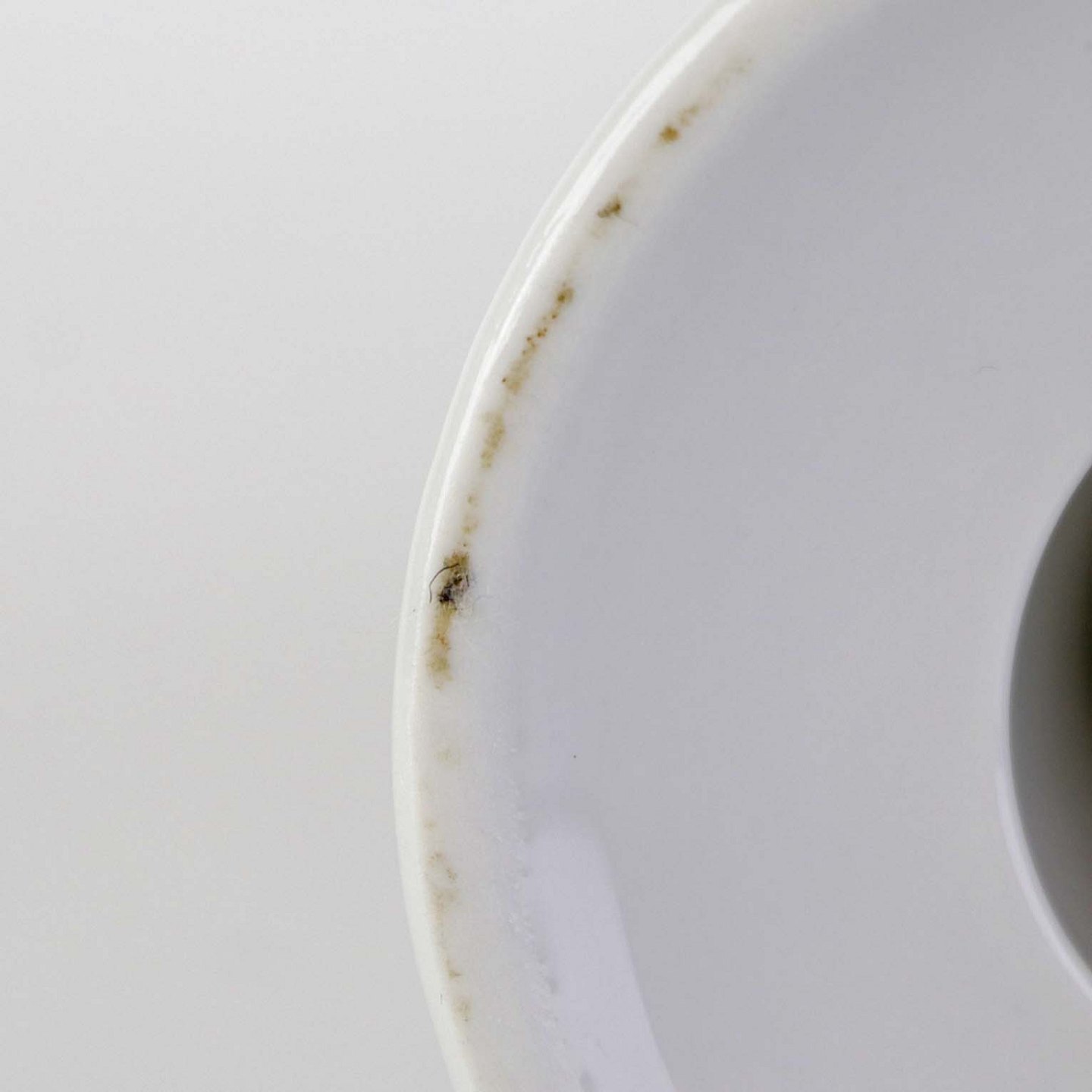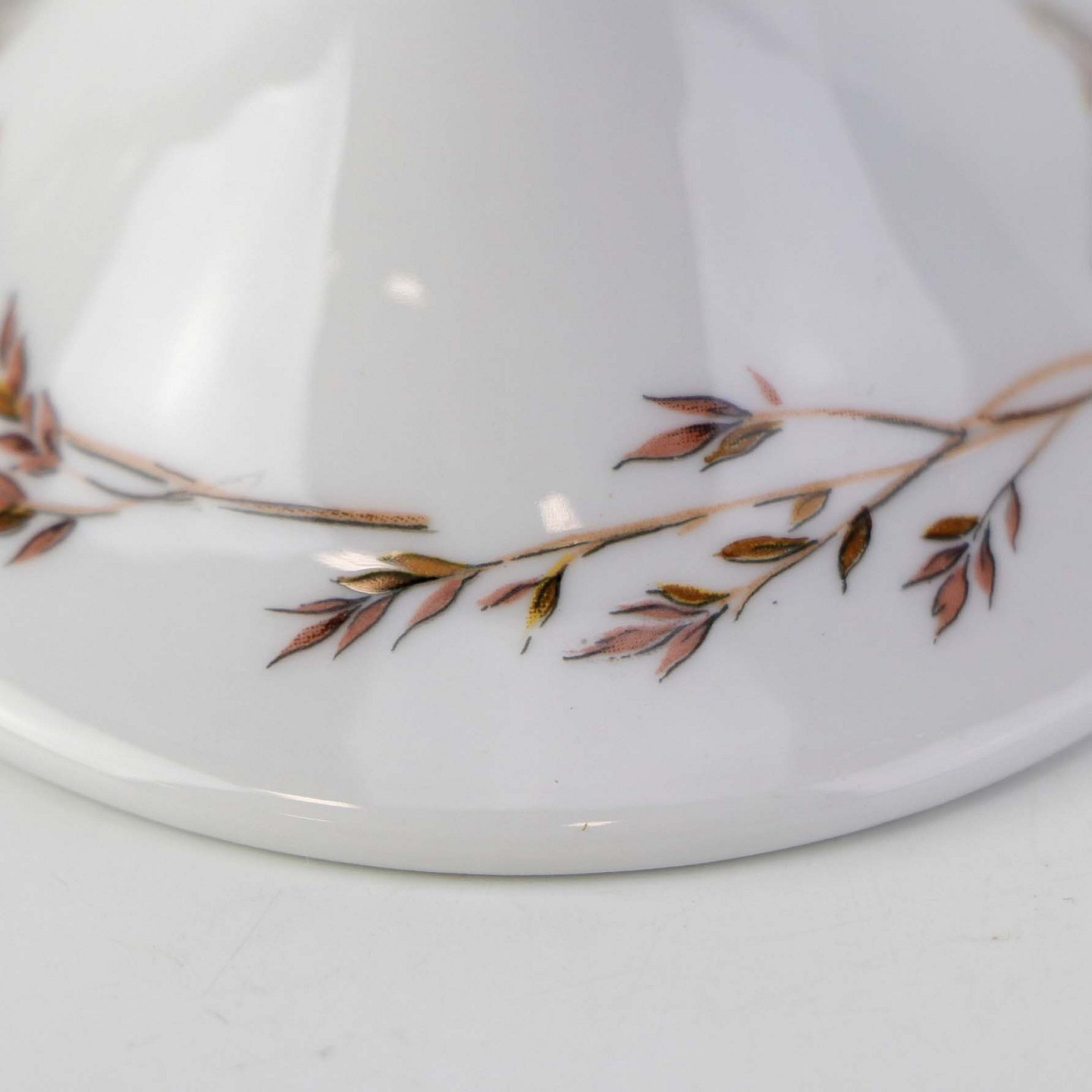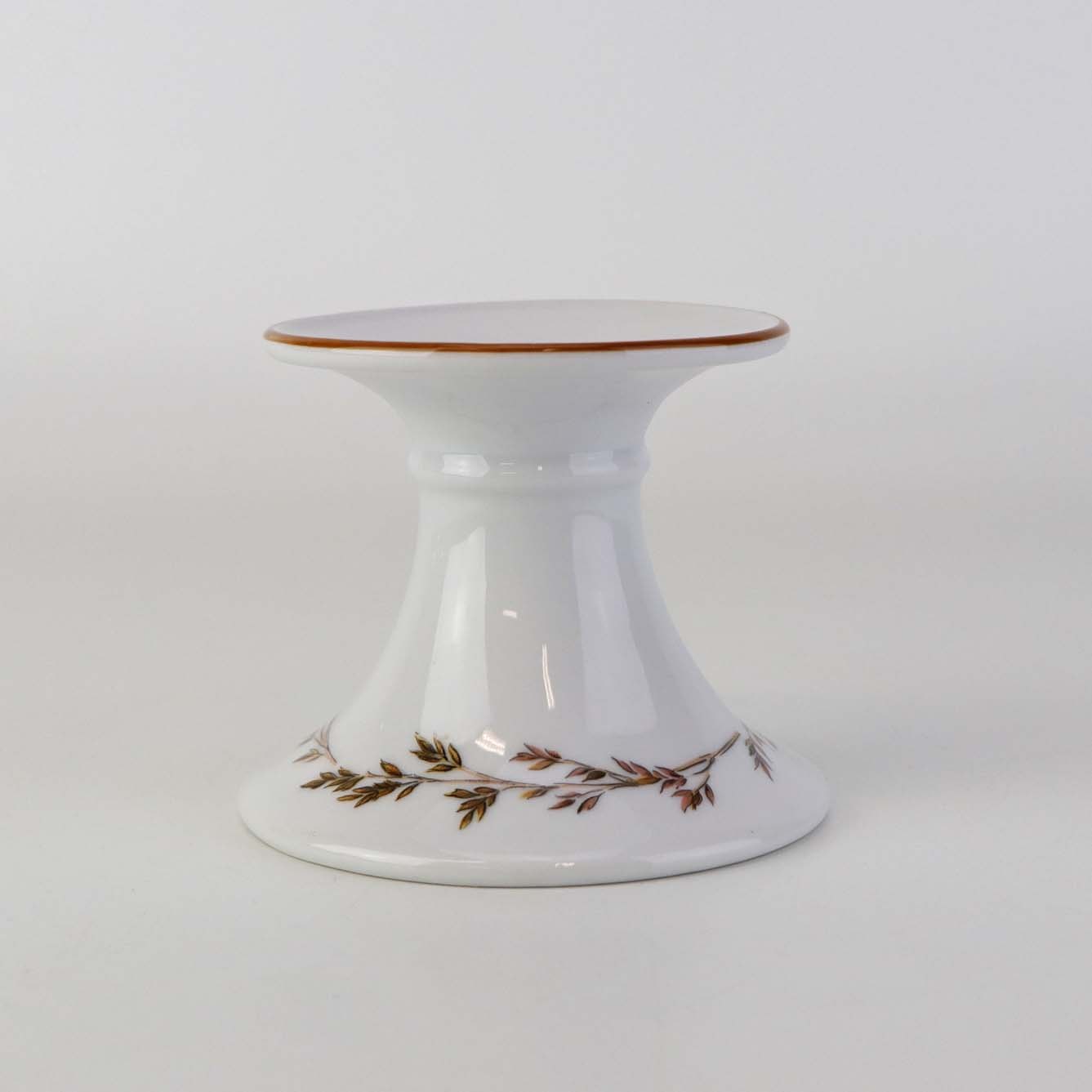 Text available in Danish: Lysestage i porcelæn med motiv af grene med blade fra stellet Jagtstel.