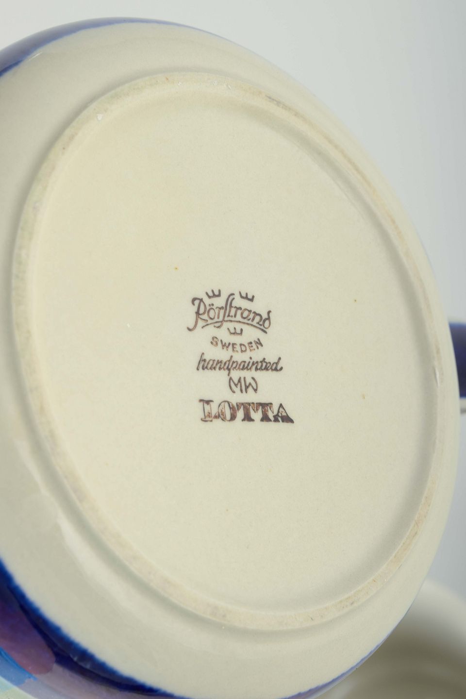 Rörstrand is one of Sweden’s oldest and most prestigious porcelain and faience manufacturers, founded in 1726 in Stockholm. The “Lotta” series is an example of the factory’s retro-inspired design from the 1970s and 80s, characterized by colorful and simple decoration that reflects the Nordic design language of the period. Today, the series is sought after by collectors of Scandinavian retro design.