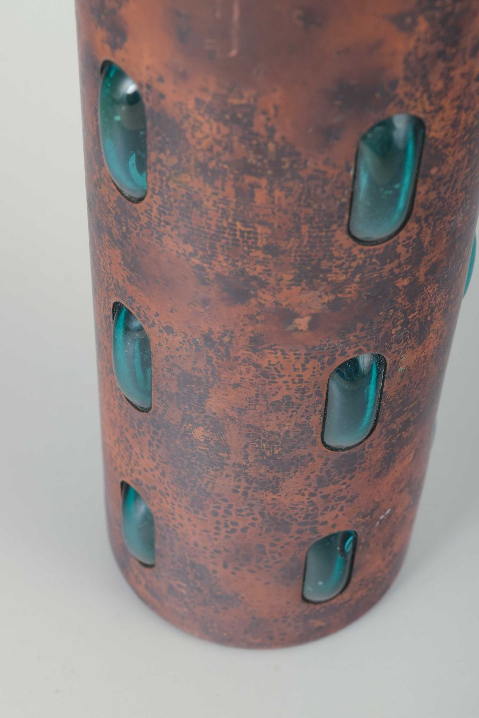 Vase in copper and glass. Mid-20th century.